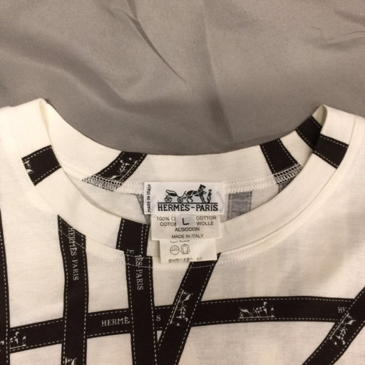 | エルメス L サイズ リボン柄 ロングスリーブ 長袖 カットソー レディース 綿 コットン 100% トップス HERMES |
