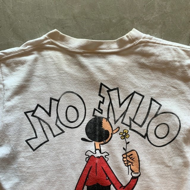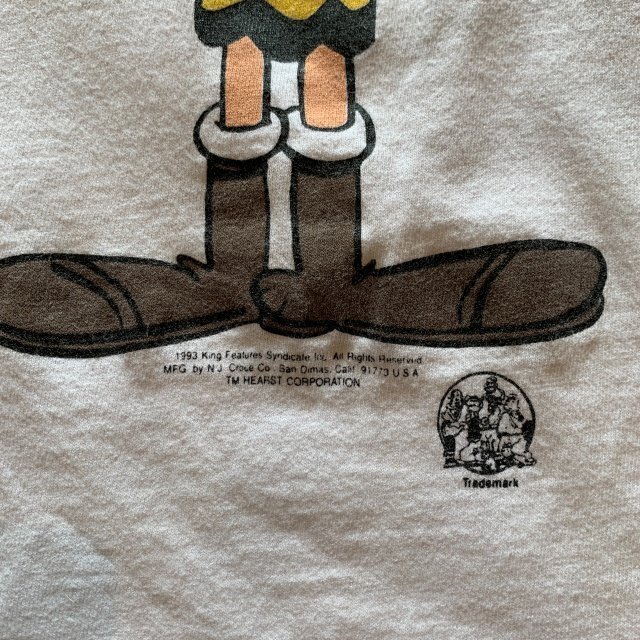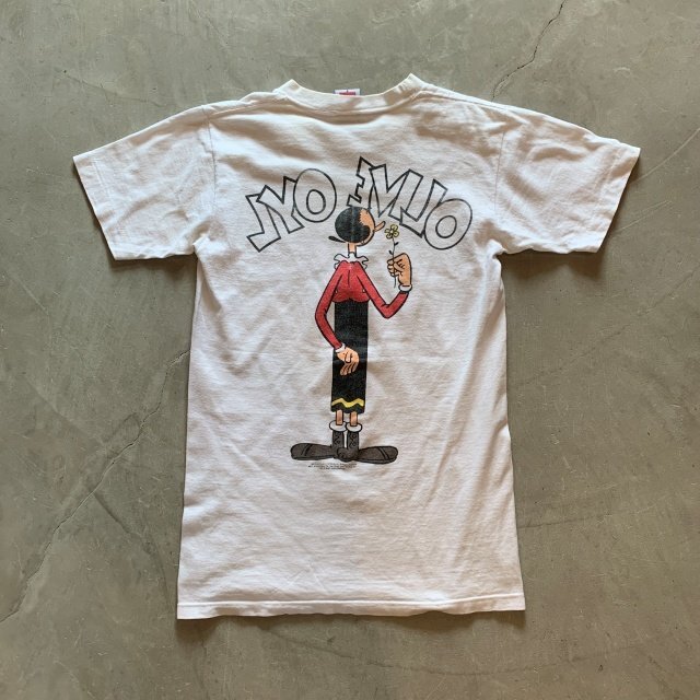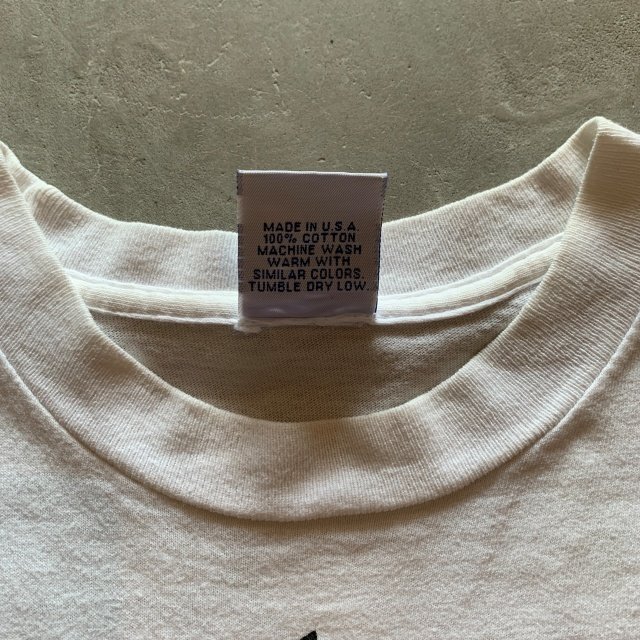★商品状態★ ・着用感があり、首リブにヨレや若干の薄汚れ、左脇腹付近にピンホールが一カ所見られます。 ・古着慣れされている方でしたら問題なく着用していただける程度かと思います。 ・MADE IN USA、袖シングルステッチ ★素材★ COTTON 100% ★配色★ 白 ★サイズ表記★ S レディースもしくはキッズサイズ ・実寸を参考にして下さい。 ★実寸サイズ★ 肩幅39㎝ 身幅42㎝(脇下~脇下) 着丈63㎝(襟下~裾) ・平置きにての採寸となります。 ・若干の誤差はご了承ください。 |