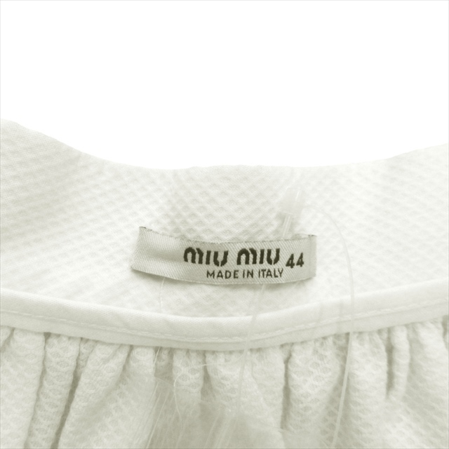 美品 ミュウミュウ miumiu ボタンダウン ギャザー スカート フレア ロング スカラップ 2020年製 44 白 ホワイト レディース◆8