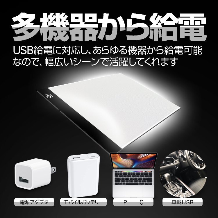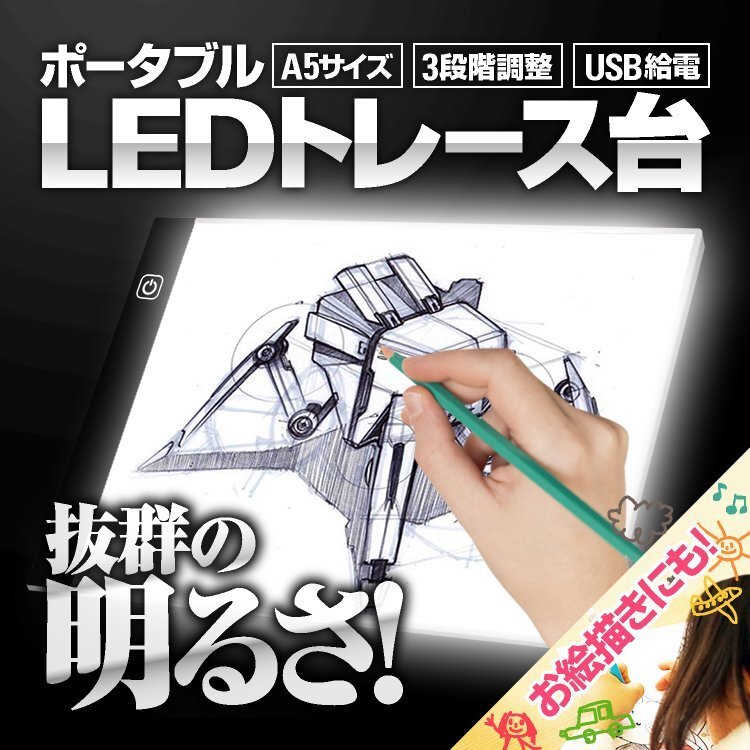 ◆USB給電 LEDトレース台 A5サイズ 3段階光量調整 薄型計量設計 ポータブル製図板 持ち運びに便利 マンガ イラスト 絵写し 測量 病院にも A5TB210