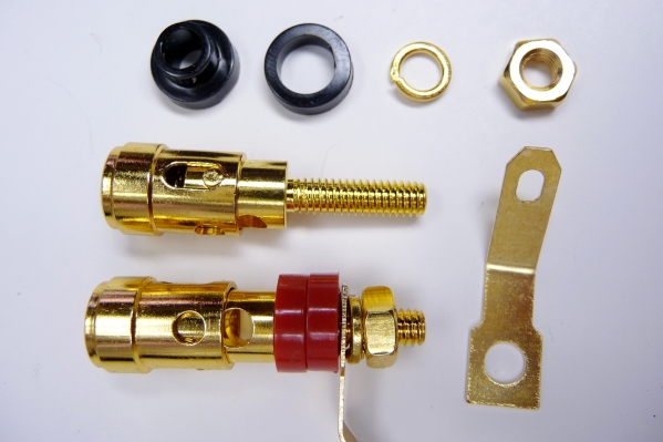 ①JBLの民間向用機種に互換性があるサイズです。或いはネットワーク並びにボックス端子用にも利用でき、一般オーディオ機器用にも使い勝手の良い端子です。