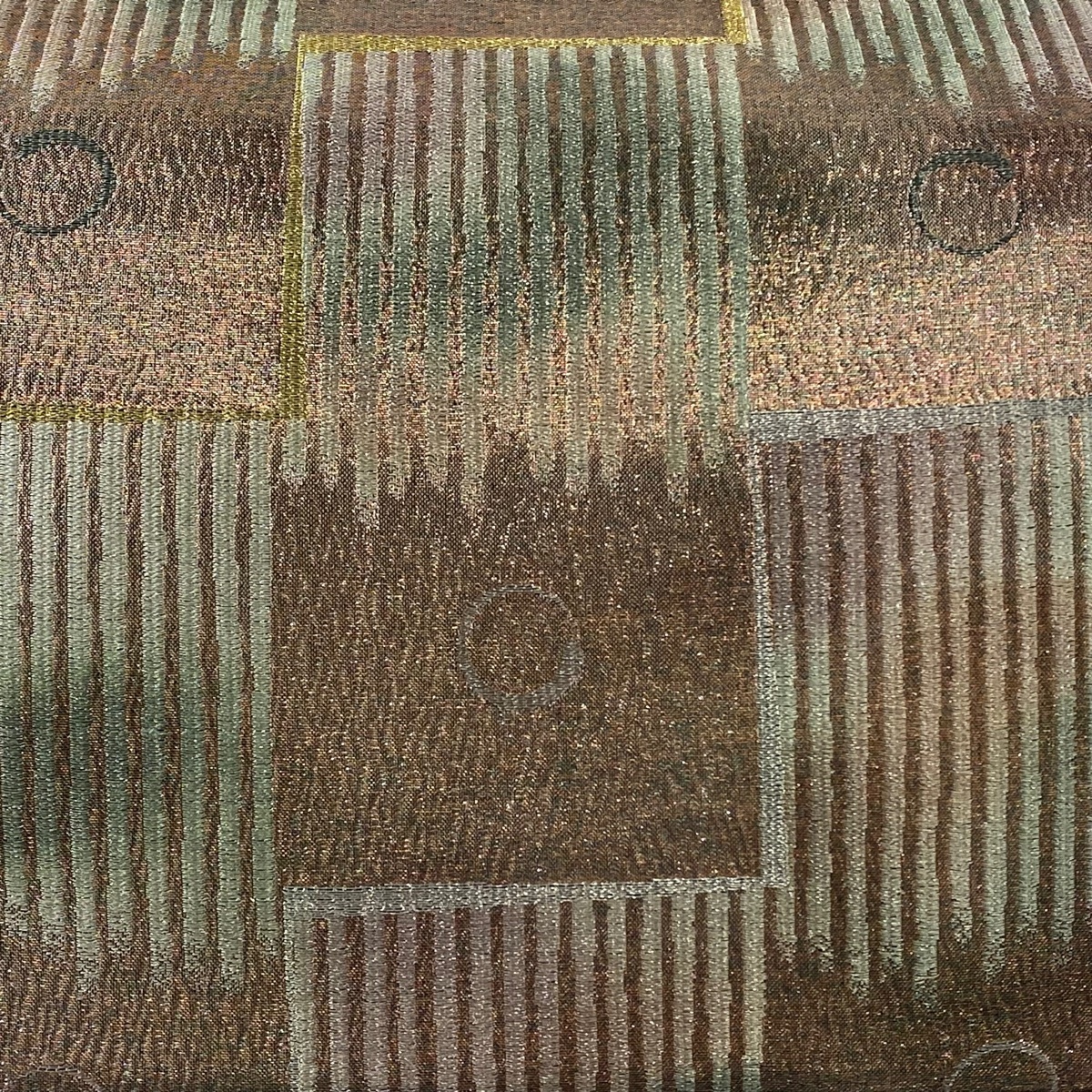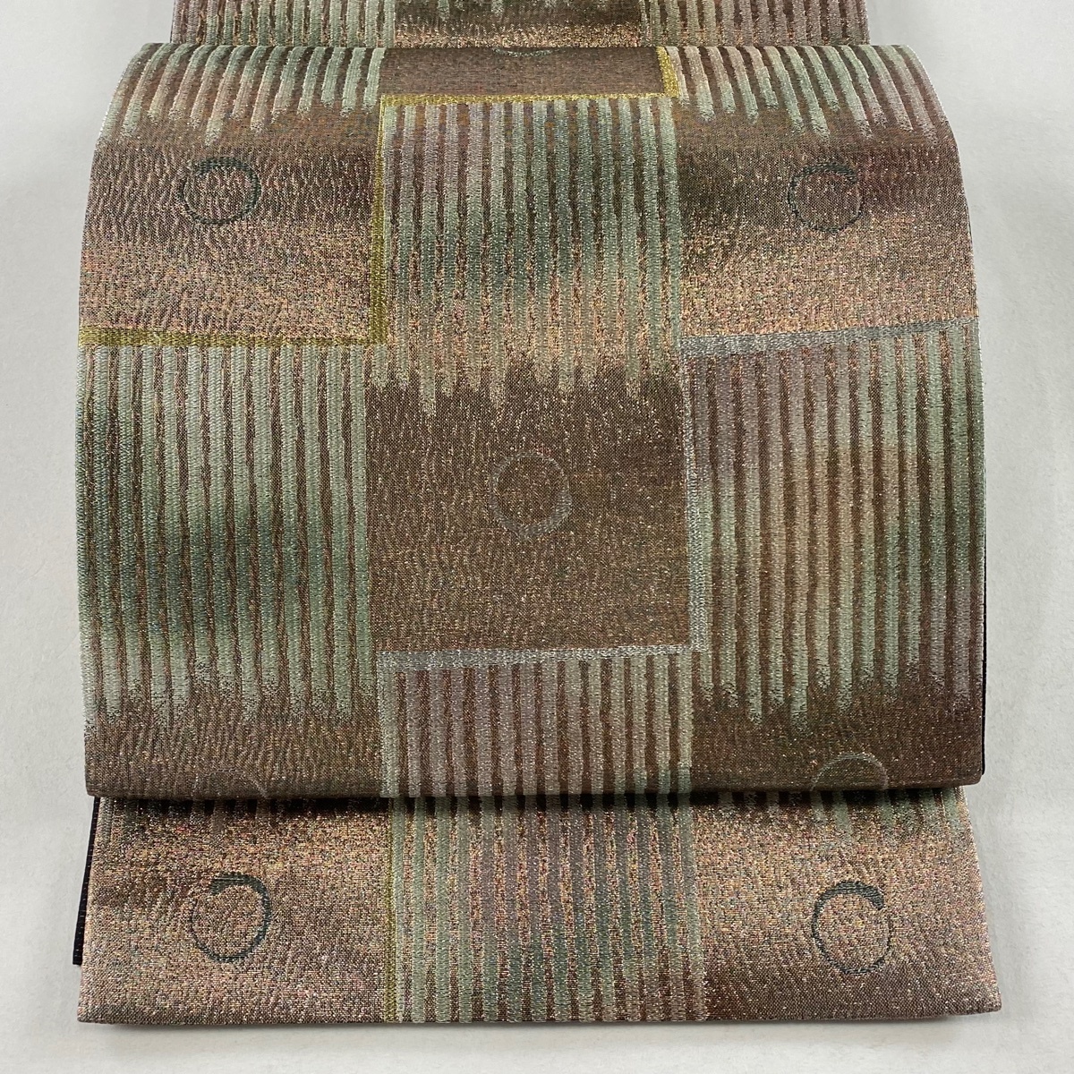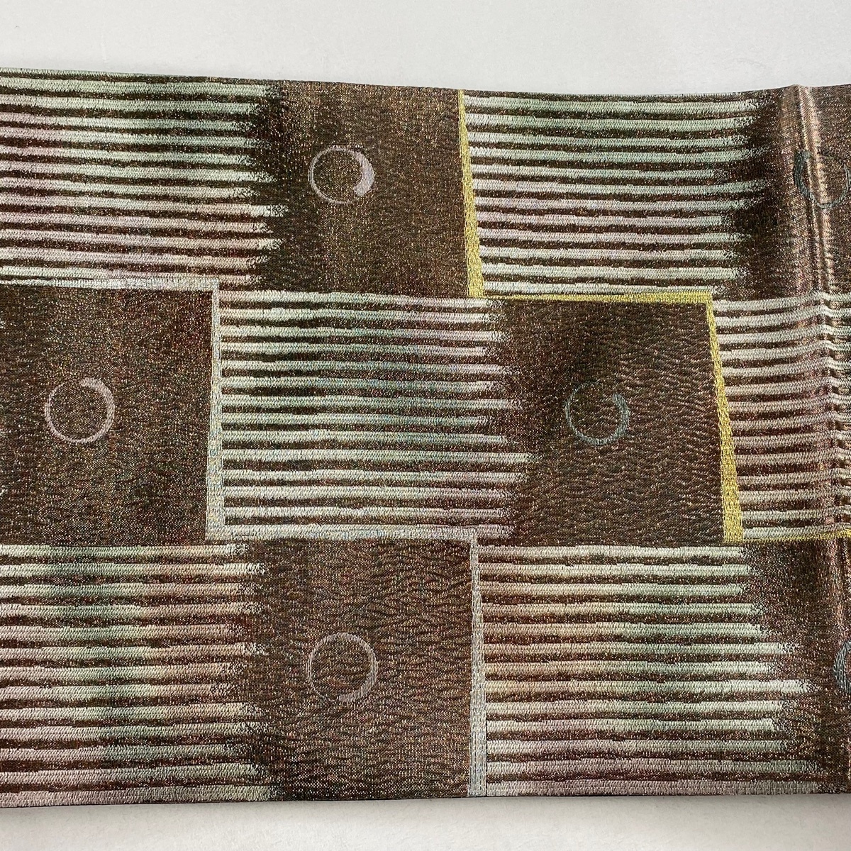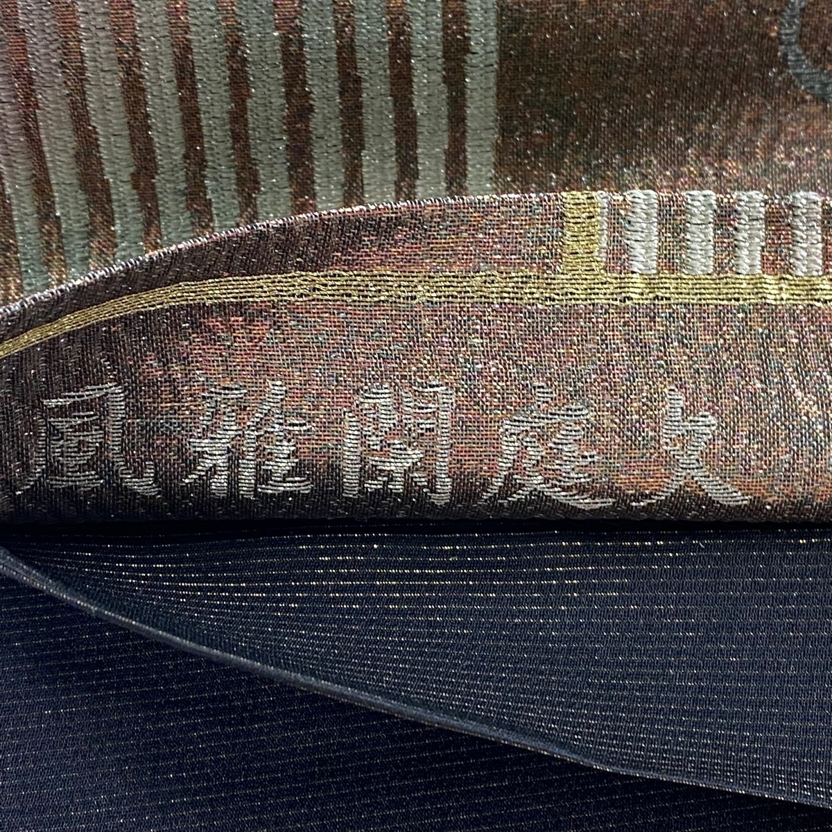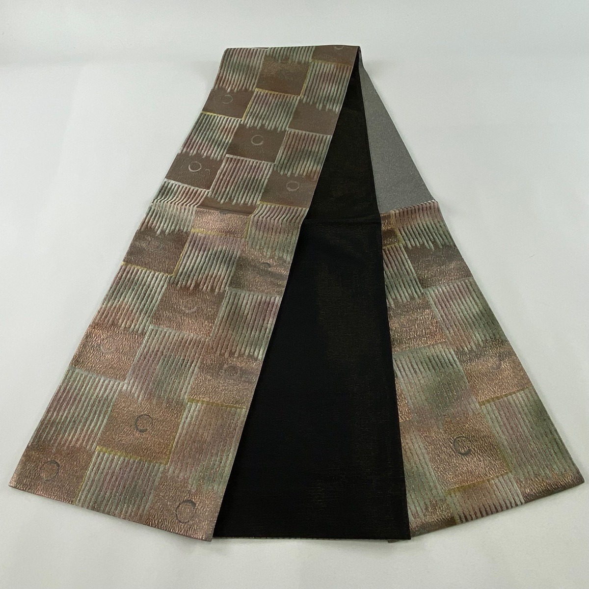 | 袋帯 美品 秀品 風雅閑庭文 変わり市松 金銀糸 箔 小豆色 六通 正絹 【中古】 |