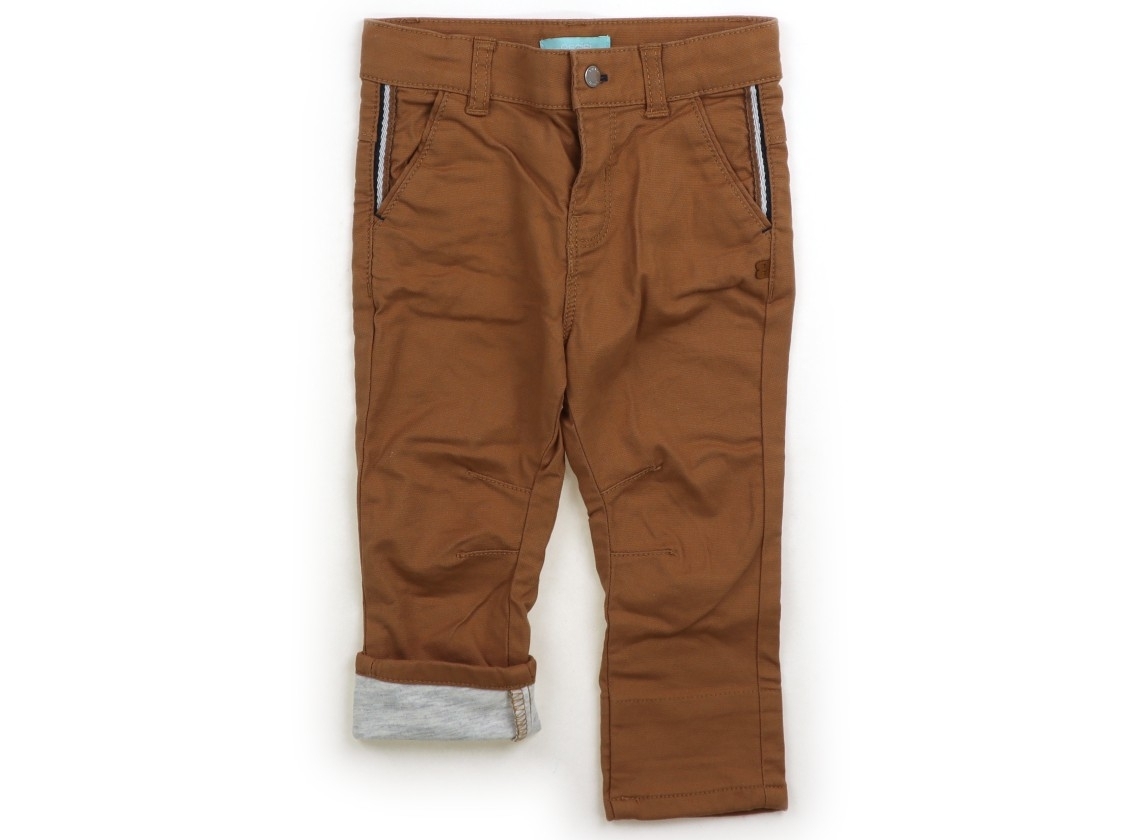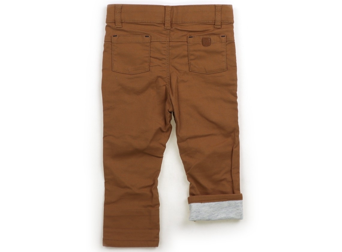 コットン・ポリウレタン素材。前ボタン開きで、ウエストにはサイズ調整ゴムが付いています。実際のサイズ表記は、12M。目立った汚れのない良品です。