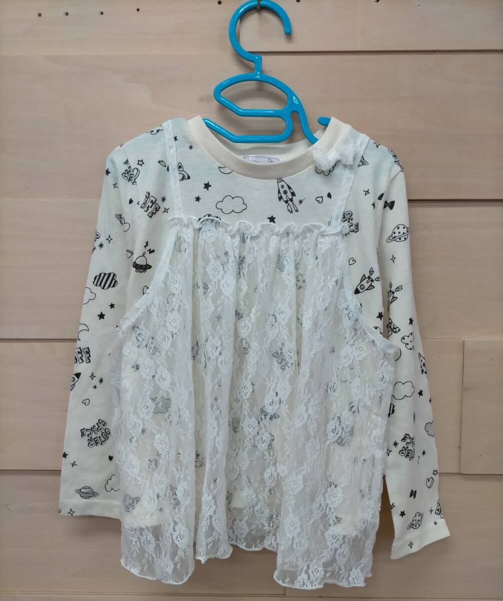 ④Carhy キャシー レイヤード  レース付き長袖Tシャツ クリーム 120cm 6~7才
