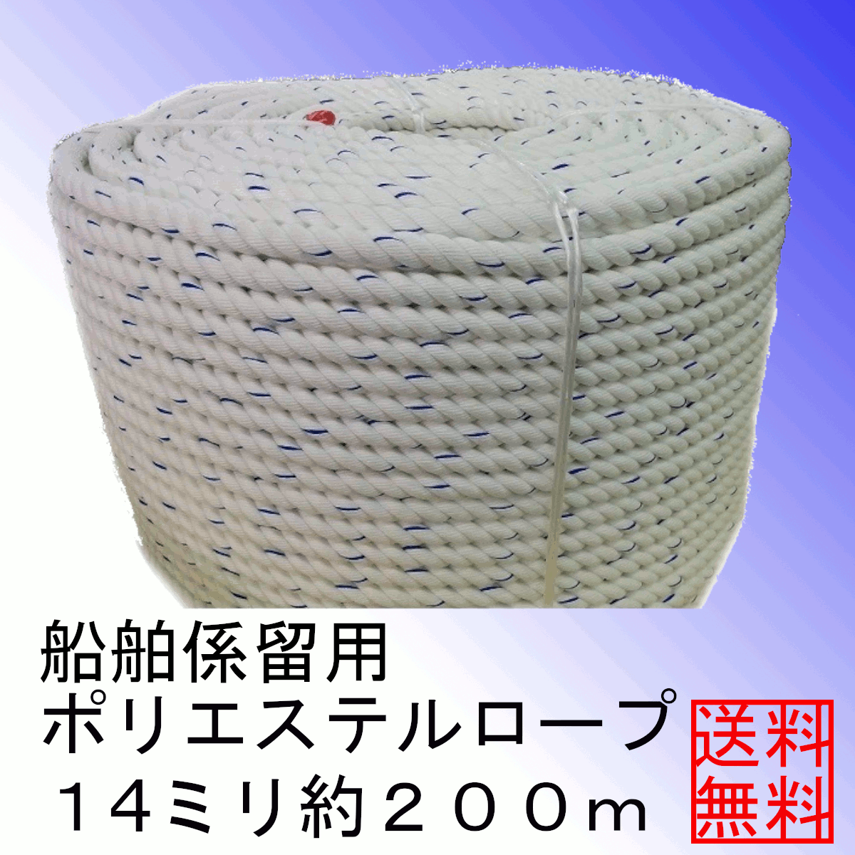 <送料無料>船舶係留用ポリエステルロープ14ミリ約200m アンカーロープ