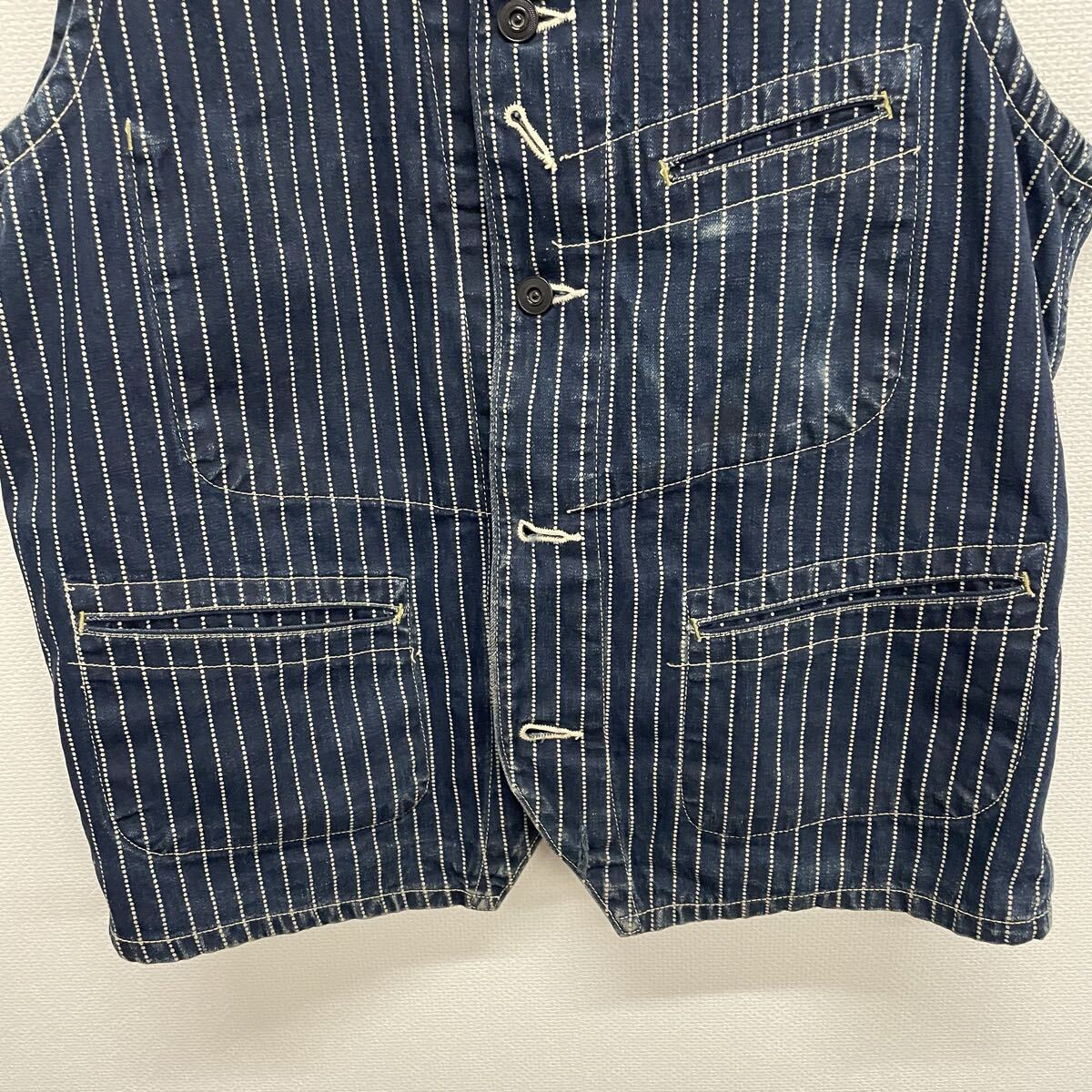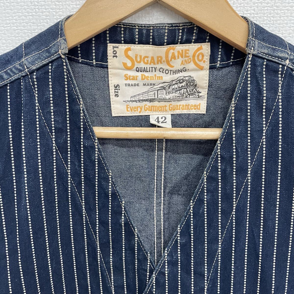 【SUGER CANE】シュガーケーン★ワークベスト ネイビー ストライプ size42 インディゴ SC12654 デニム
