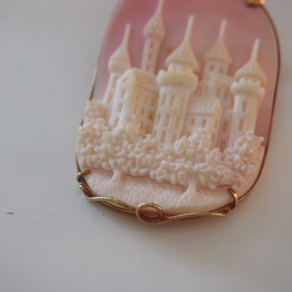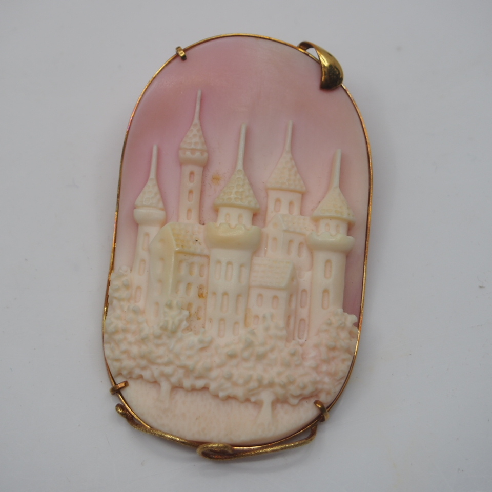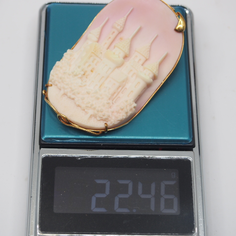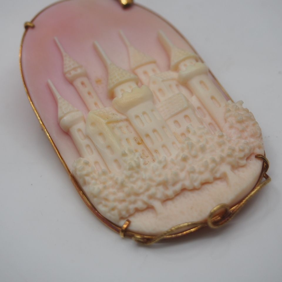 コンクシェル カメオ K18 ブローチ ペンダントトップ 城モチーフ ピンク 22.4g