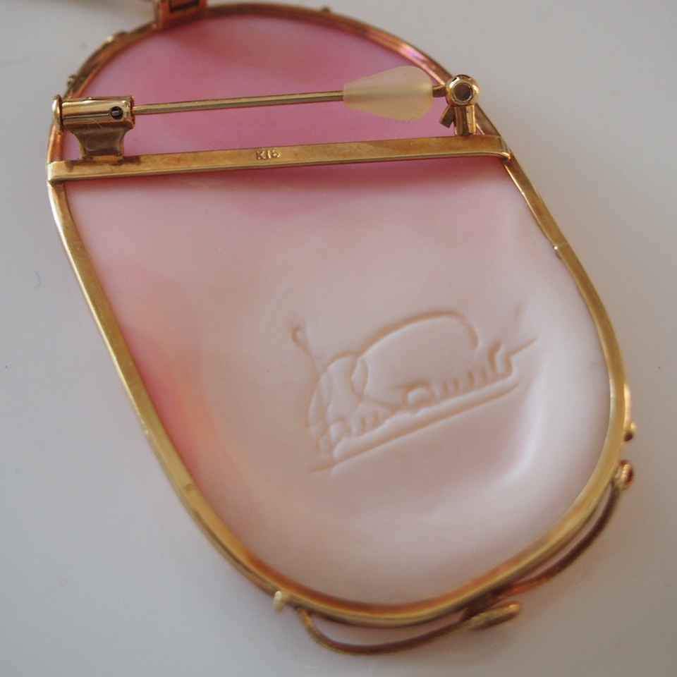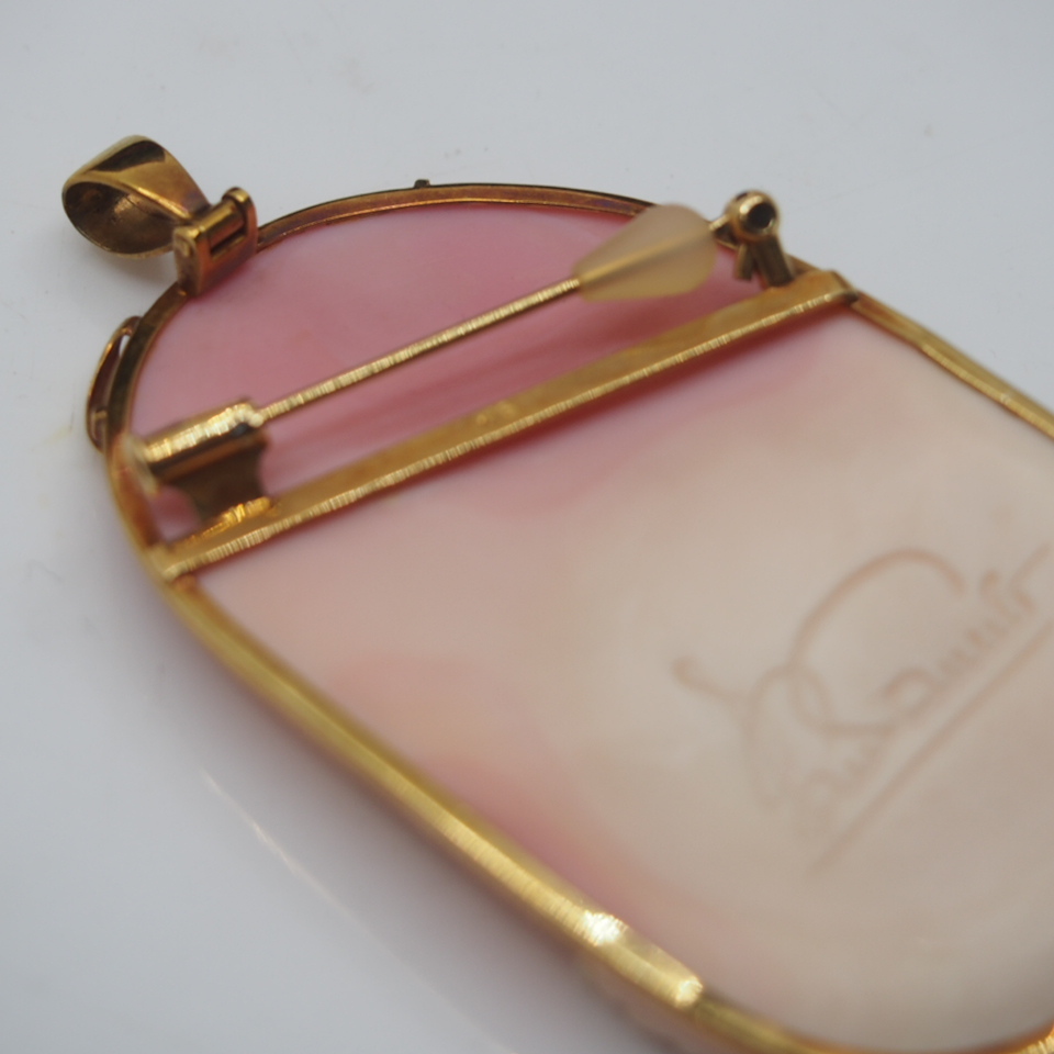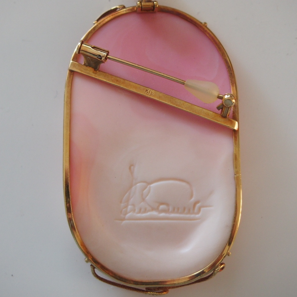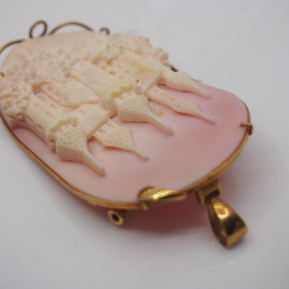 コンクシェル カメオ K18 ブローチ ペンダントトップ 城モチーフ ピンク 22.4g