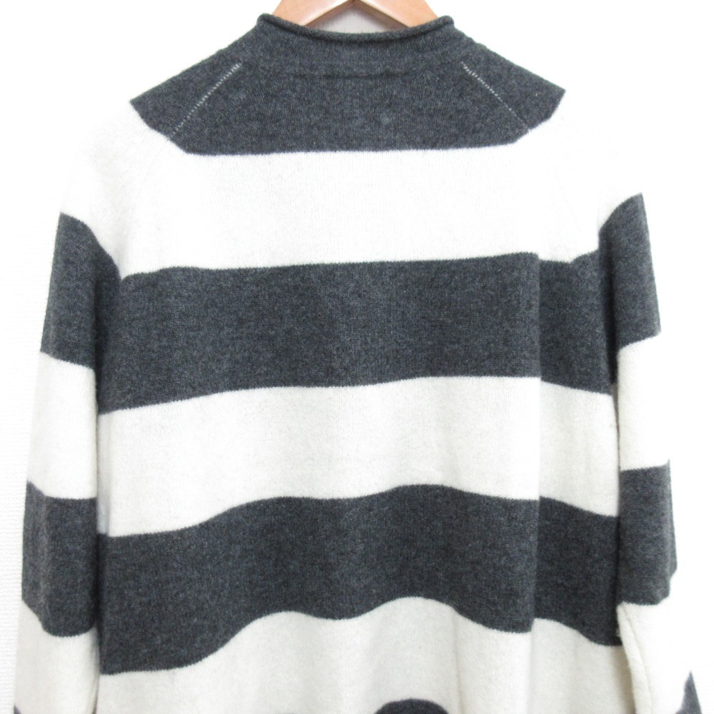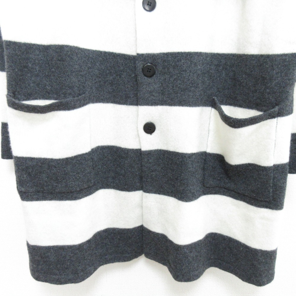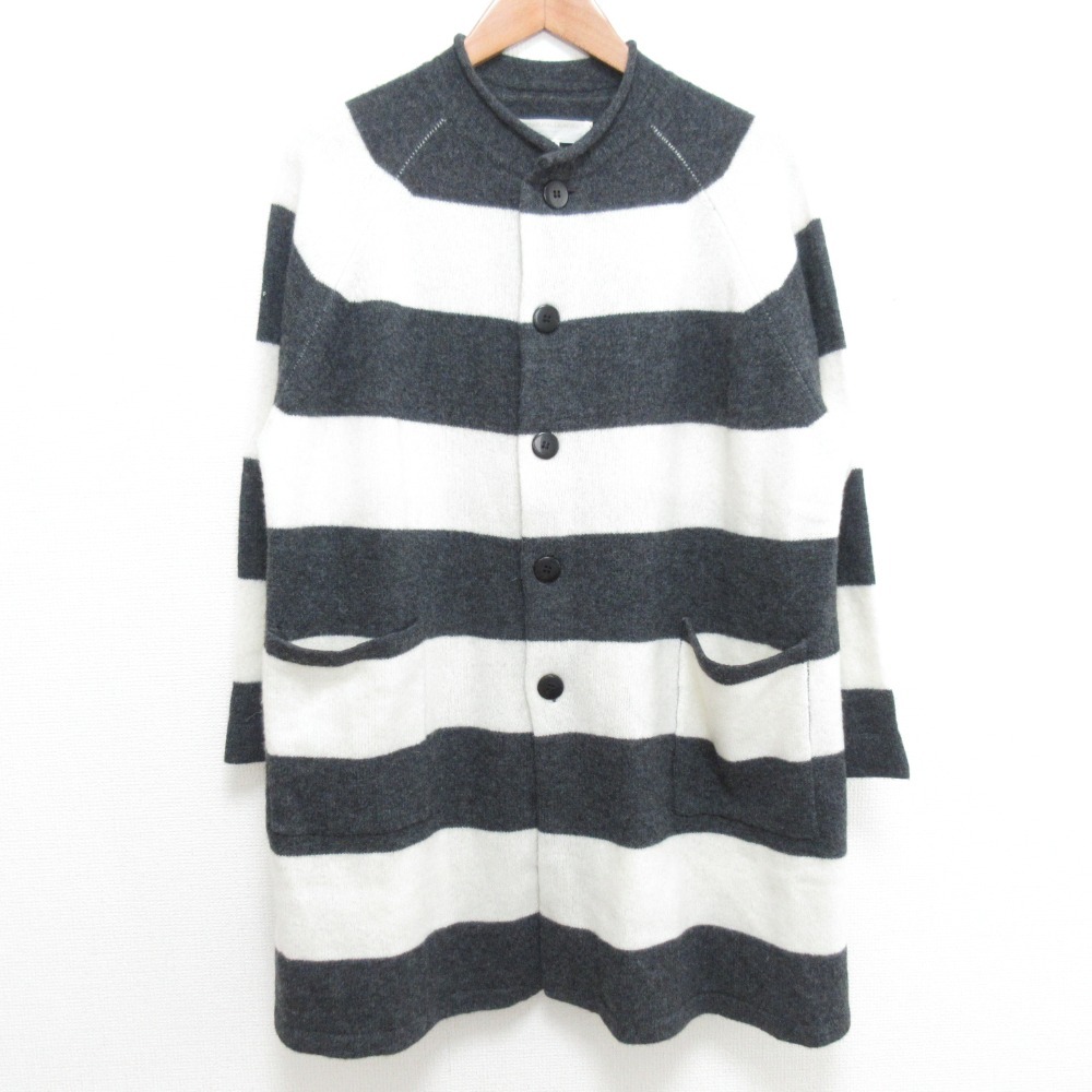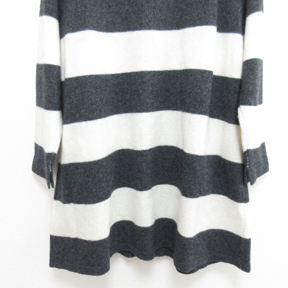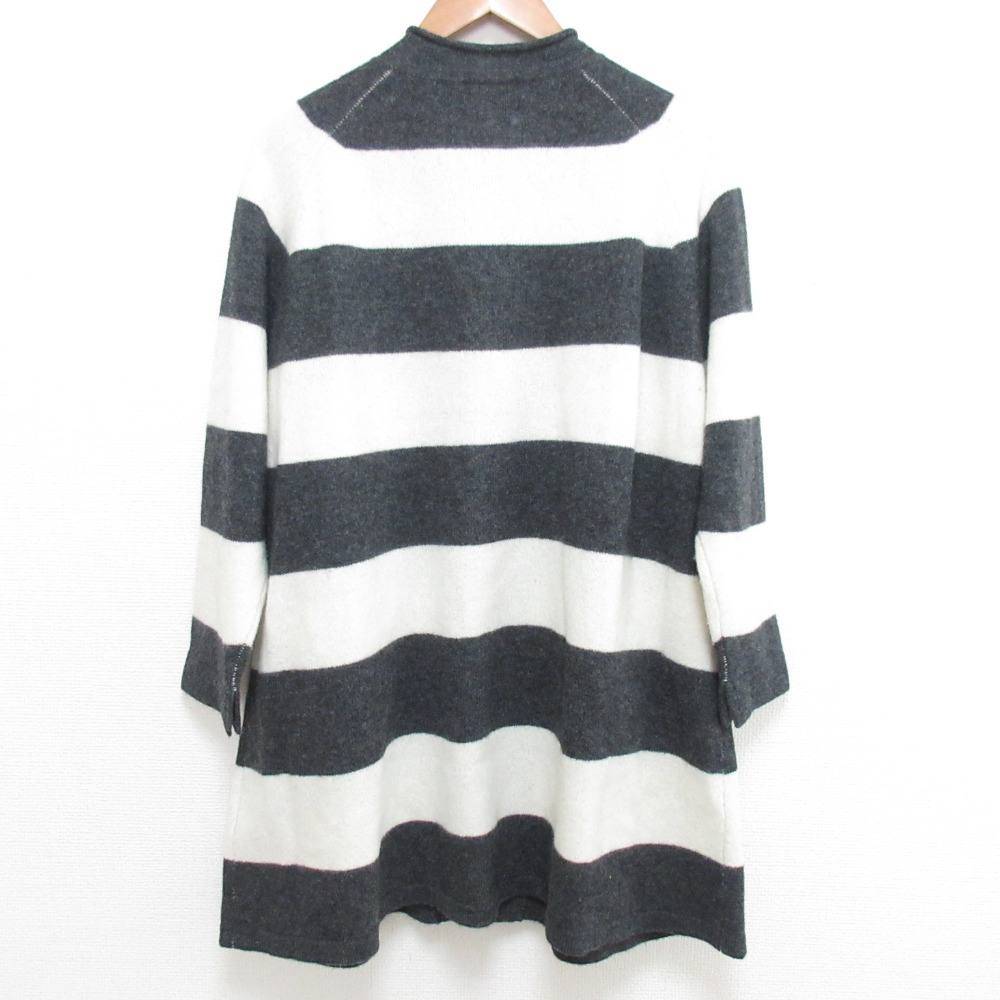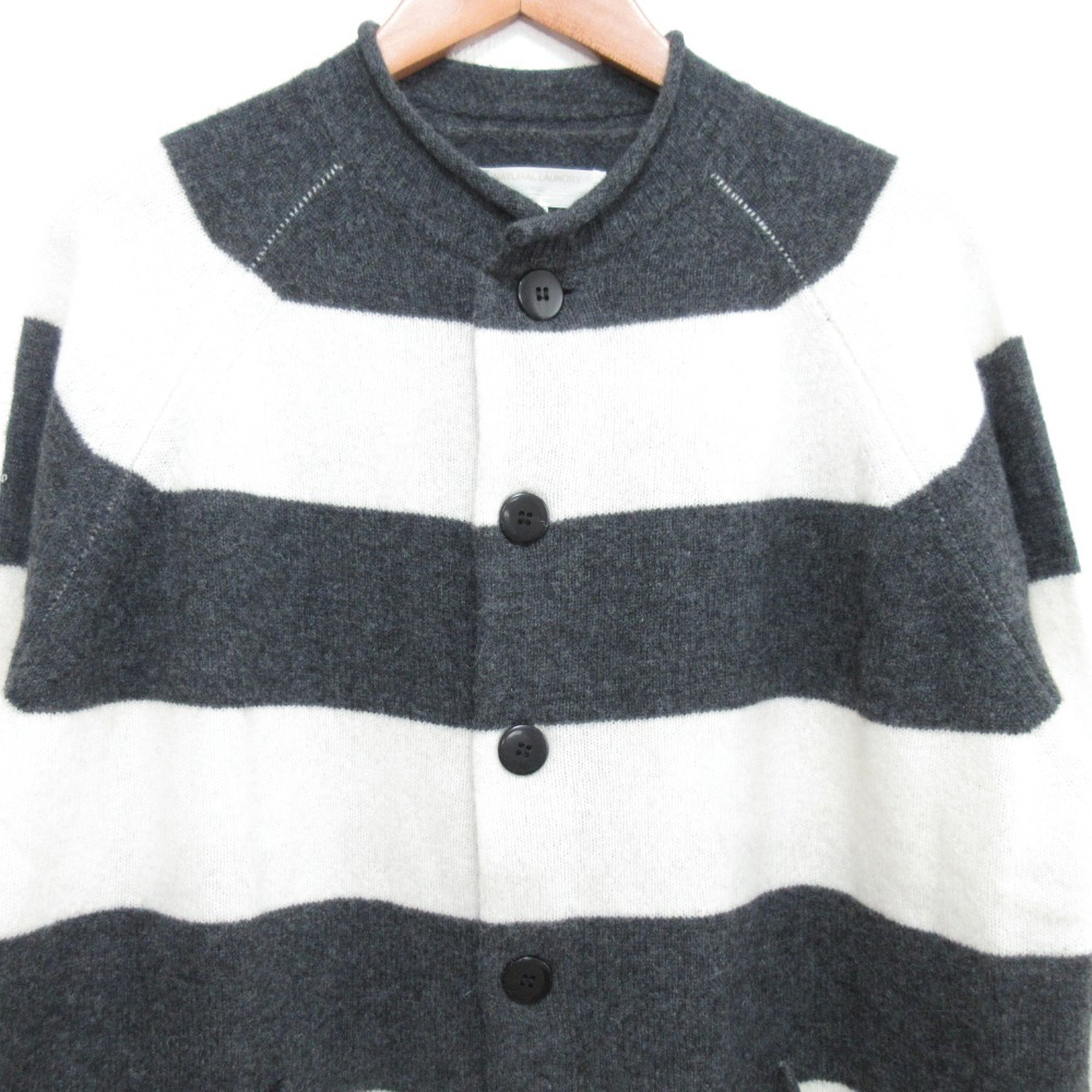 商品名:NATURAL LAUNDRY ナチュラルランドリー ボーダー ニット ロングカーディガン 7195K-050 サイズ2 グレー×ホワイト