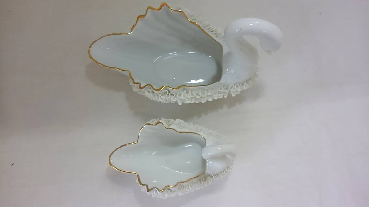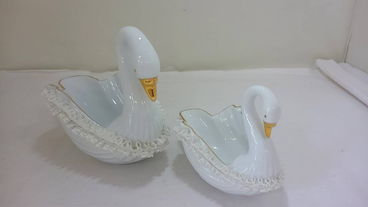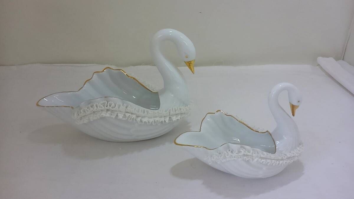【菊水-406】ROYAL ARDEN 白鳥 置物 大小セット ロイヤルアーデン スワン 小物入れ(HN) |