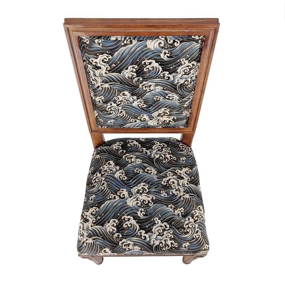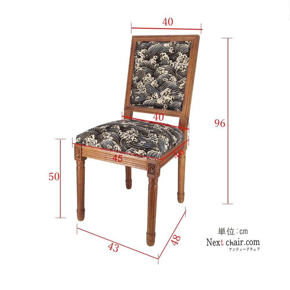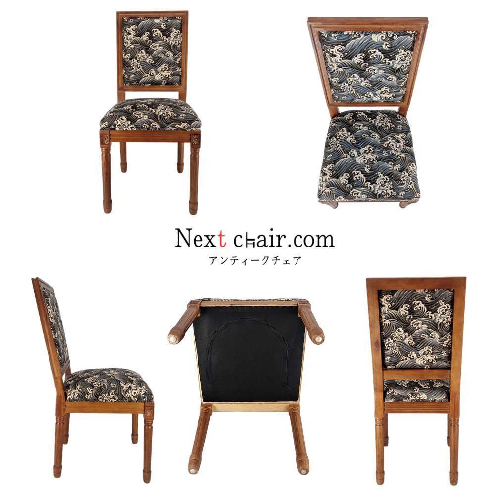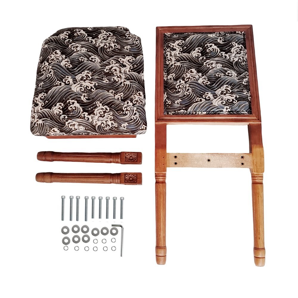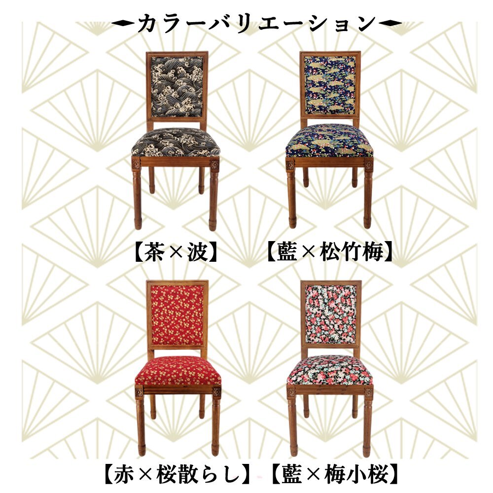歴史長いアンティーク調のチェアがレトロな和柄の座面と背もたを加工します。