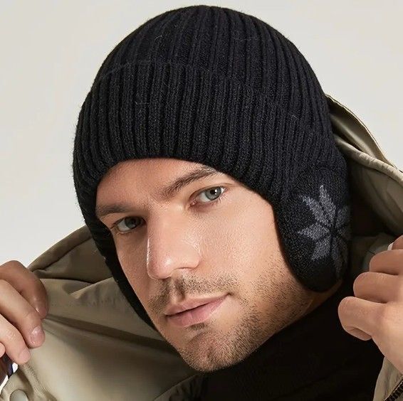 ニット帽 フリーサイズ メンズ レディース  耳あて  防寒帽子 キャップ   ブラック