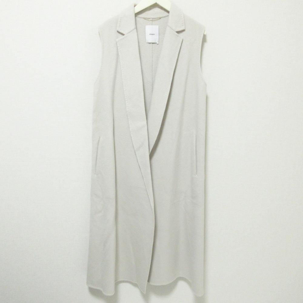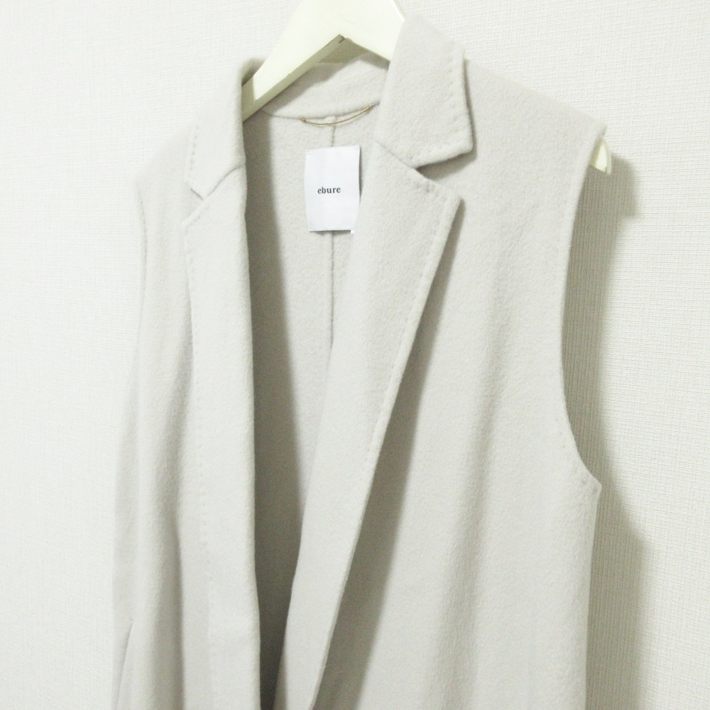 美品 ebure エブール ウールリバー ダブルフェイス ロングジレ ベスト 36 ベージュ