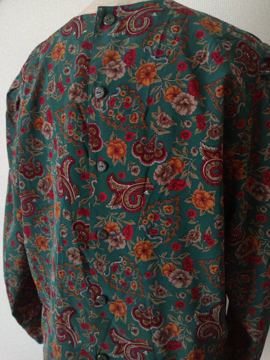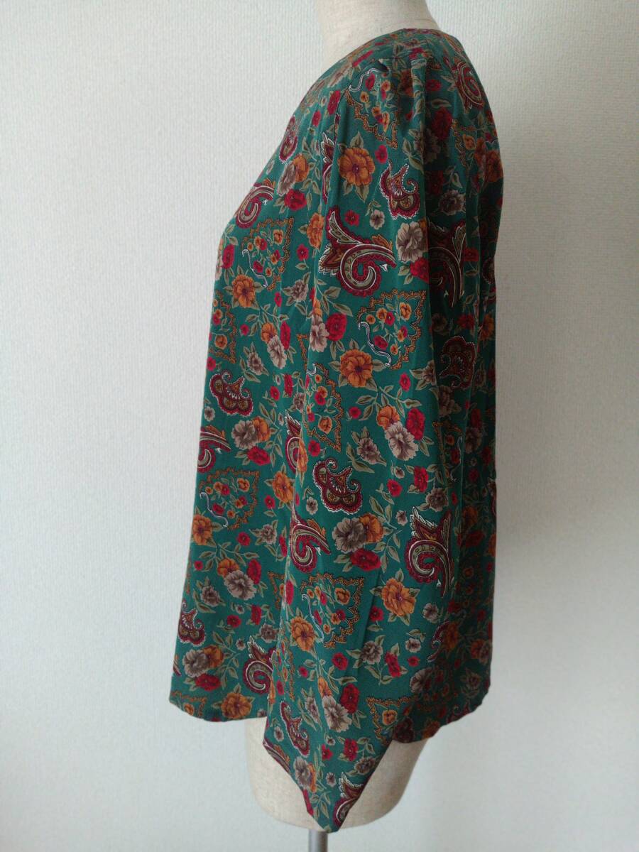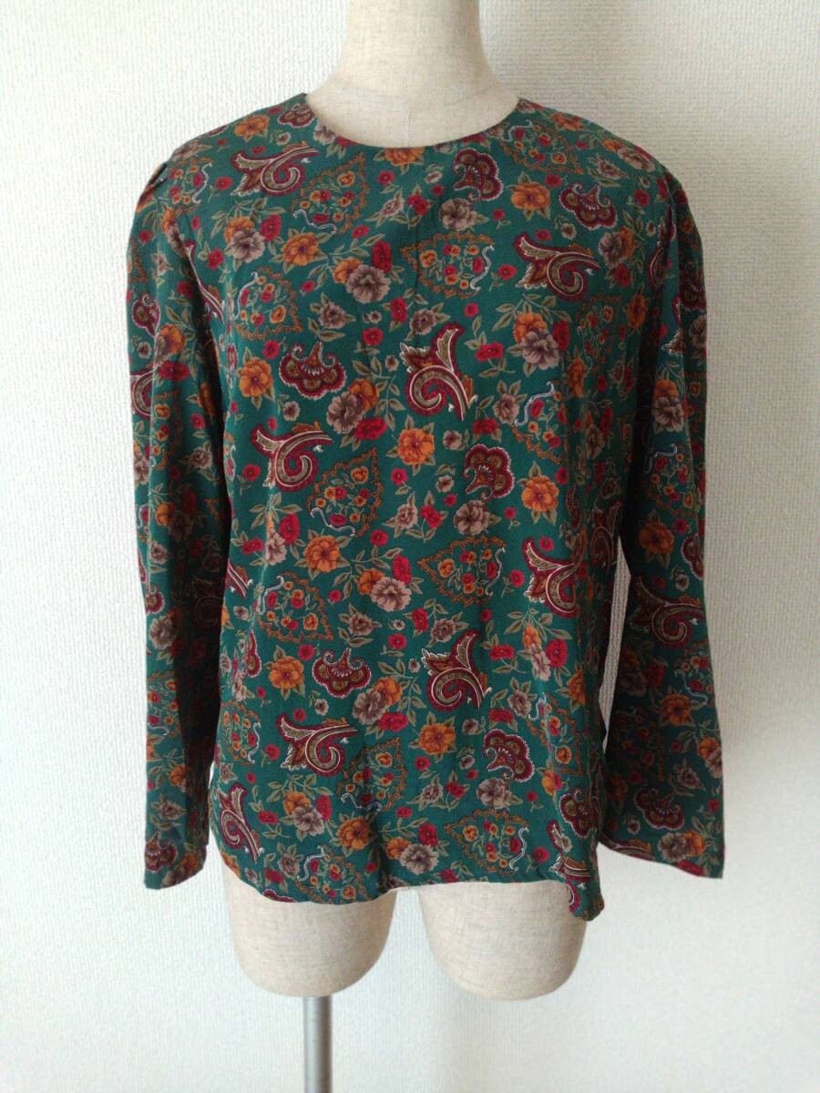 閉店セールkoret レナウン ペイズリー柄 長袖シャツ 柄シャツ 長袖 丸首 クルーネックシャツ レトロシャツ 長袖ブラウス 丸襟 ボタンシャツ