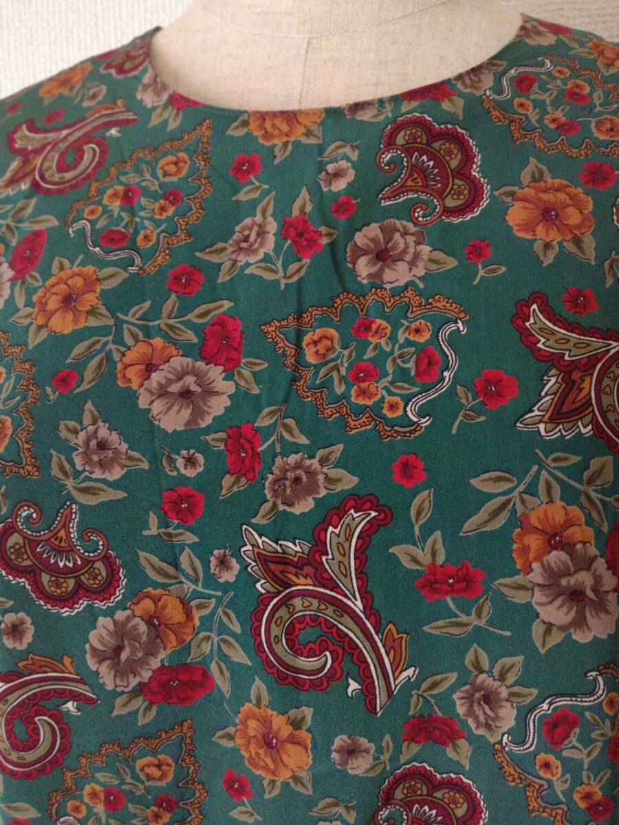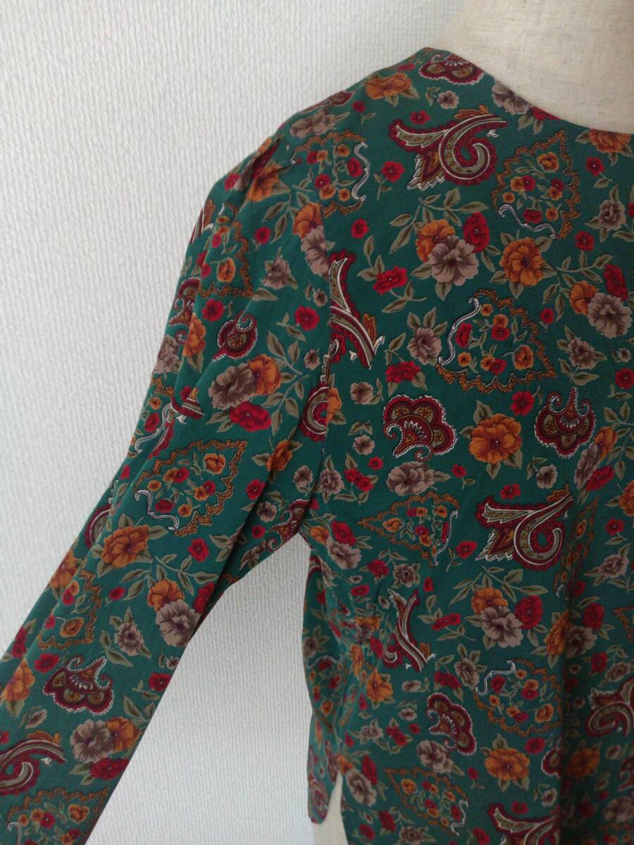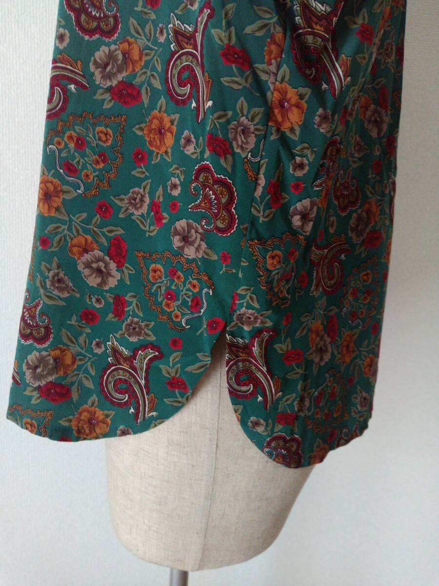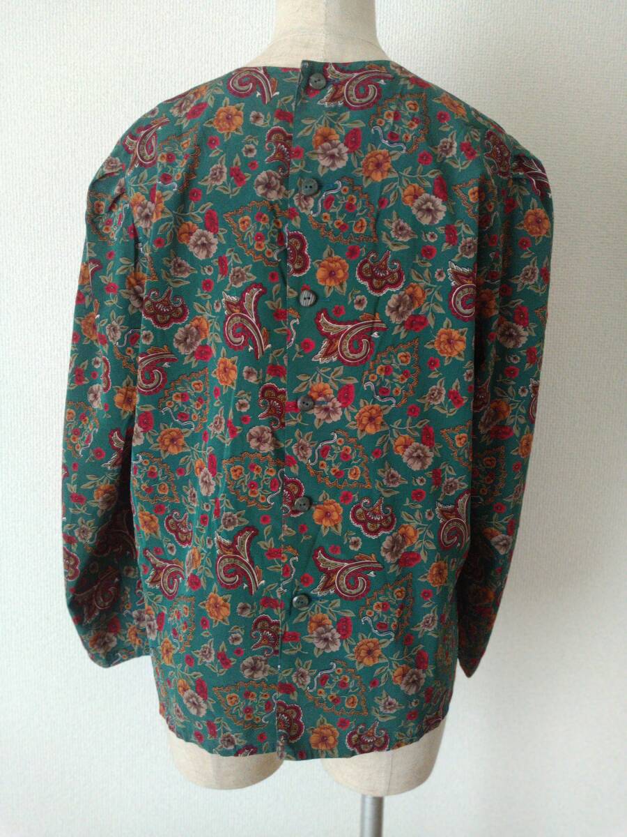 閉店セールkoret レナウン ペイズリー柄 長袖シャツ 柄シャツ 長袖 丸首 クルーネックシャツ レトロシャツ 長袖ブラウス 丸襟 ボタンシャツ