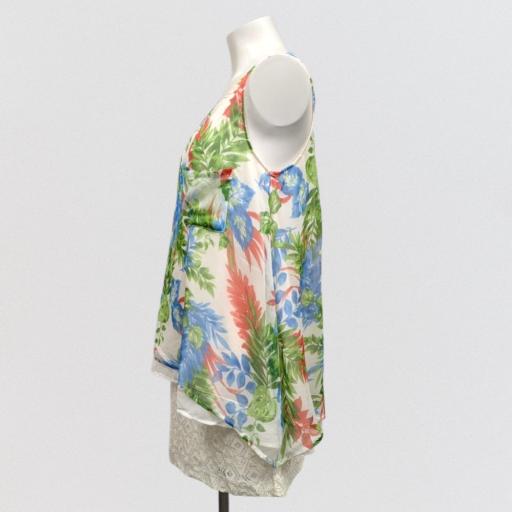 華やかボタニカル柄 レイヤードAラインタンクトップ M・ボタニカルプリント23044340