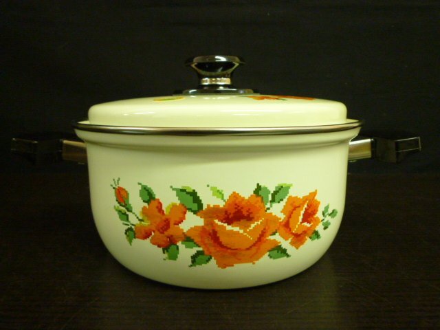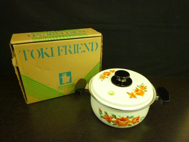 | TMB-06910-03 ホーロー 両手鍋 20cm 花がら 昭和レトロ | |