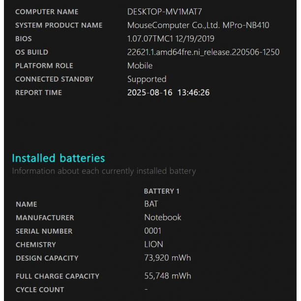 バッテリー約80%残存と良好で、長時間のバッテリー駆動OK!