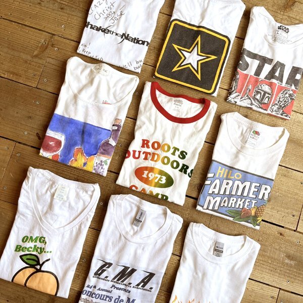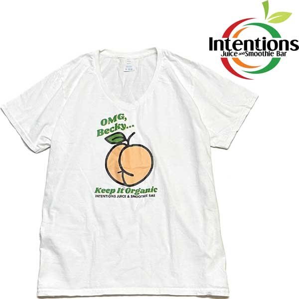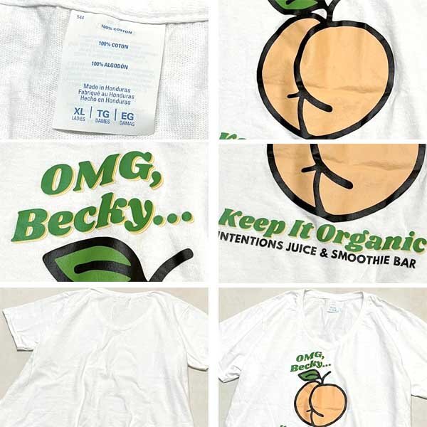 1点物◆VネックOMG Beckyプリント白Tシャツ古着XLメンズレディースOKアメカジ90sストリートスポーツ無地Tビッグサイズ中古ピーチ果物349642