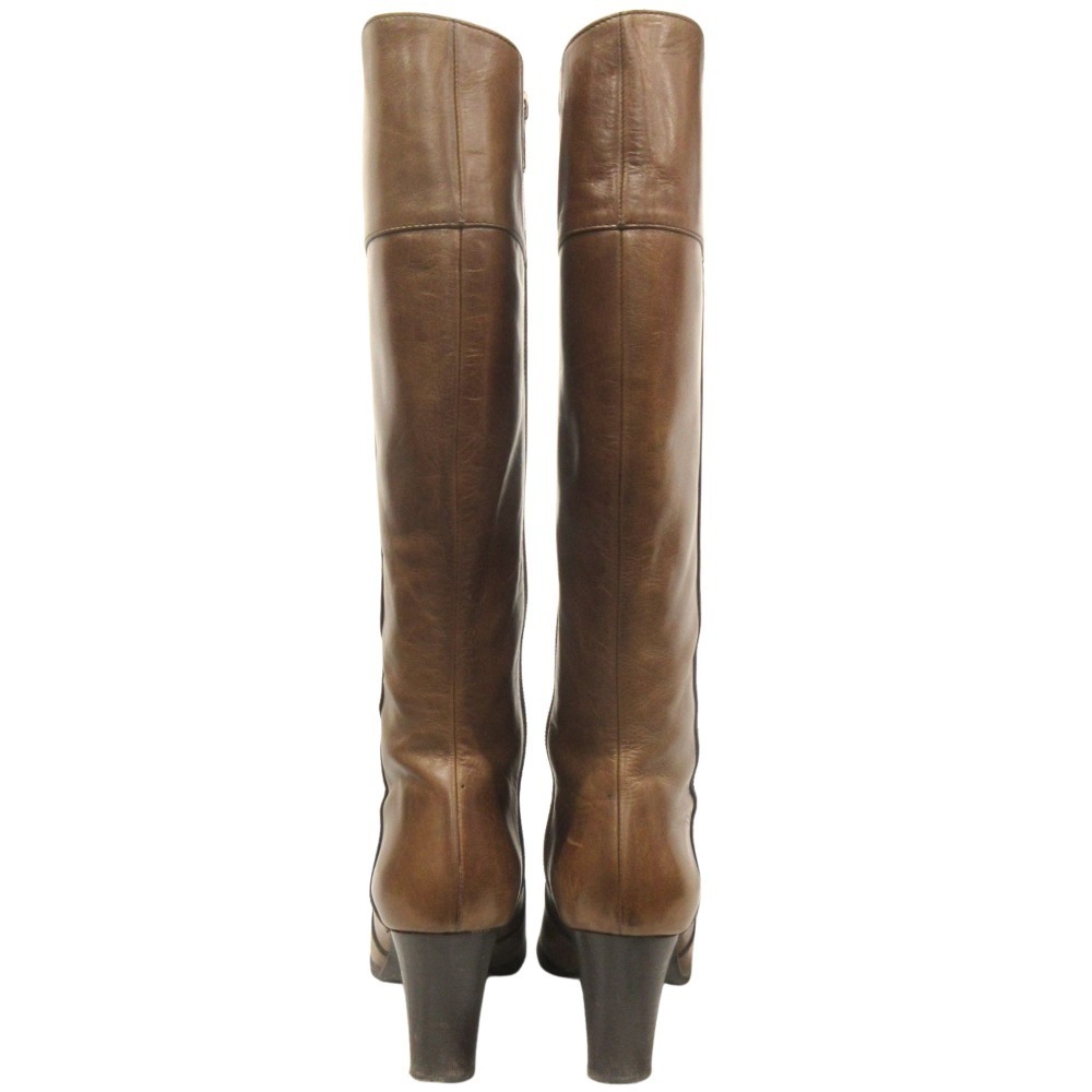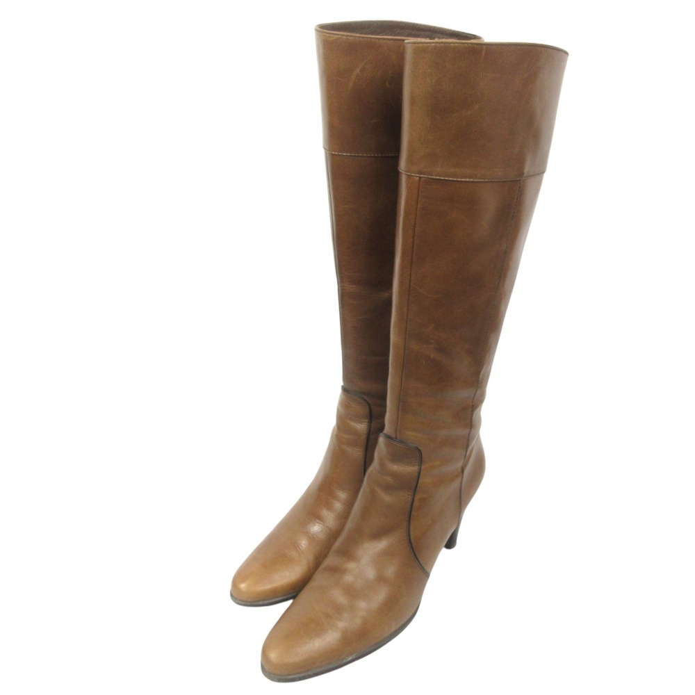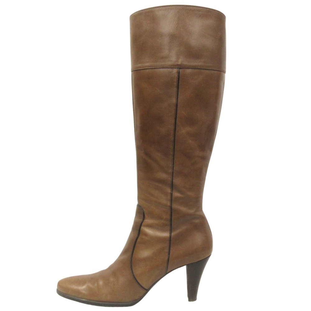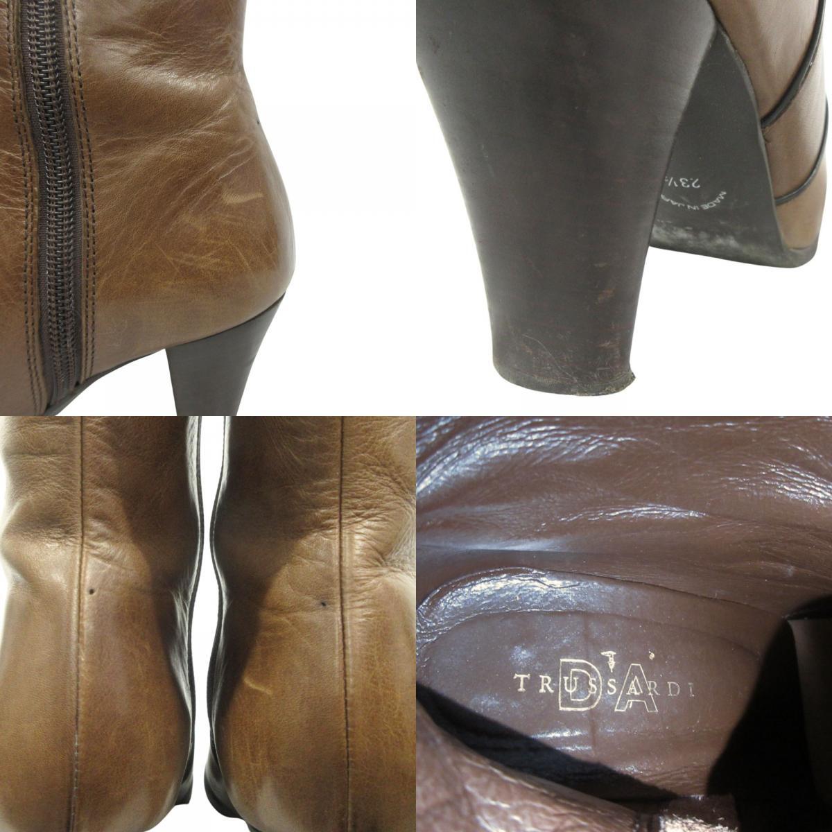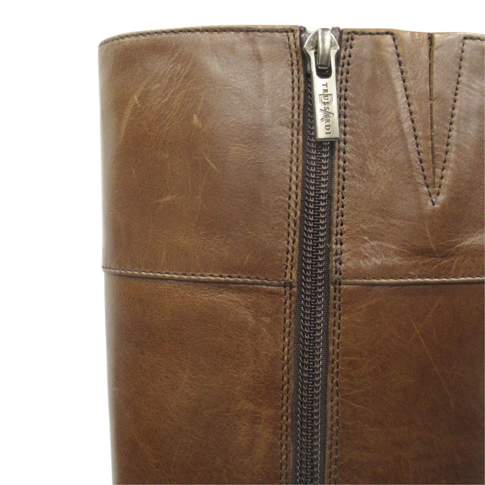 良品 TRUSSARDI トラサルディ レザー ロング ブーツ シューズ 靴 サイドジップ TRL9127 サイズ23.5 茶 ブラウン
