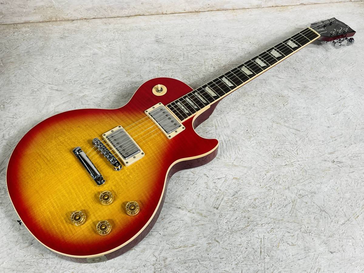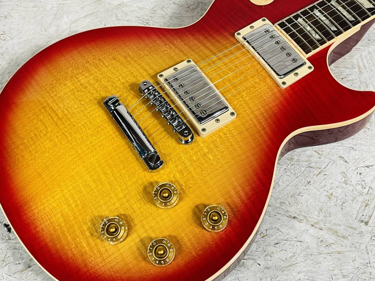 美しいフィギュアドメイプルトップが特徴のLes Paul Standard Plusです。バックは1Pマホガニー、ネックはマホガニー、指板はローズウッドです。カラーはヘリテイジ・チェリーサンバースト。2001年製ですので山野楽器が代理店の頃のモデルです。