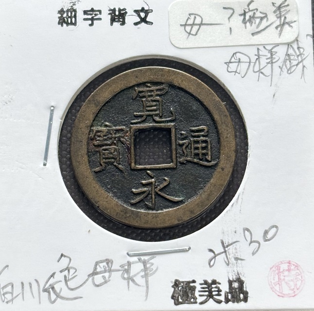 寛永通宝のカタログ等出版されている研究家の静岡の有名なS氏より譲り受けて保管 |