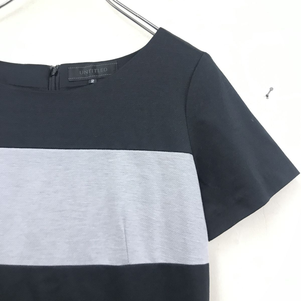 2H1727-R◆日本製 UNTITLED アンタイトル 半袖ワンピース◆サイズ2 レディース 婦人 春夏 切り替え 綿混 バイカラー 配色 ブラック グレー