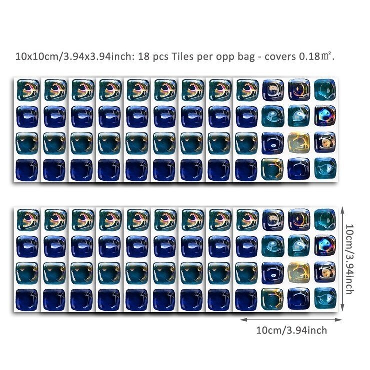 貼付けカンタン! 剥がせる タイルシール 10cm×10cm 18枚入り C735_016 キッチン 台所 洗面所 玄関 フロアシート 防水リメイクシート