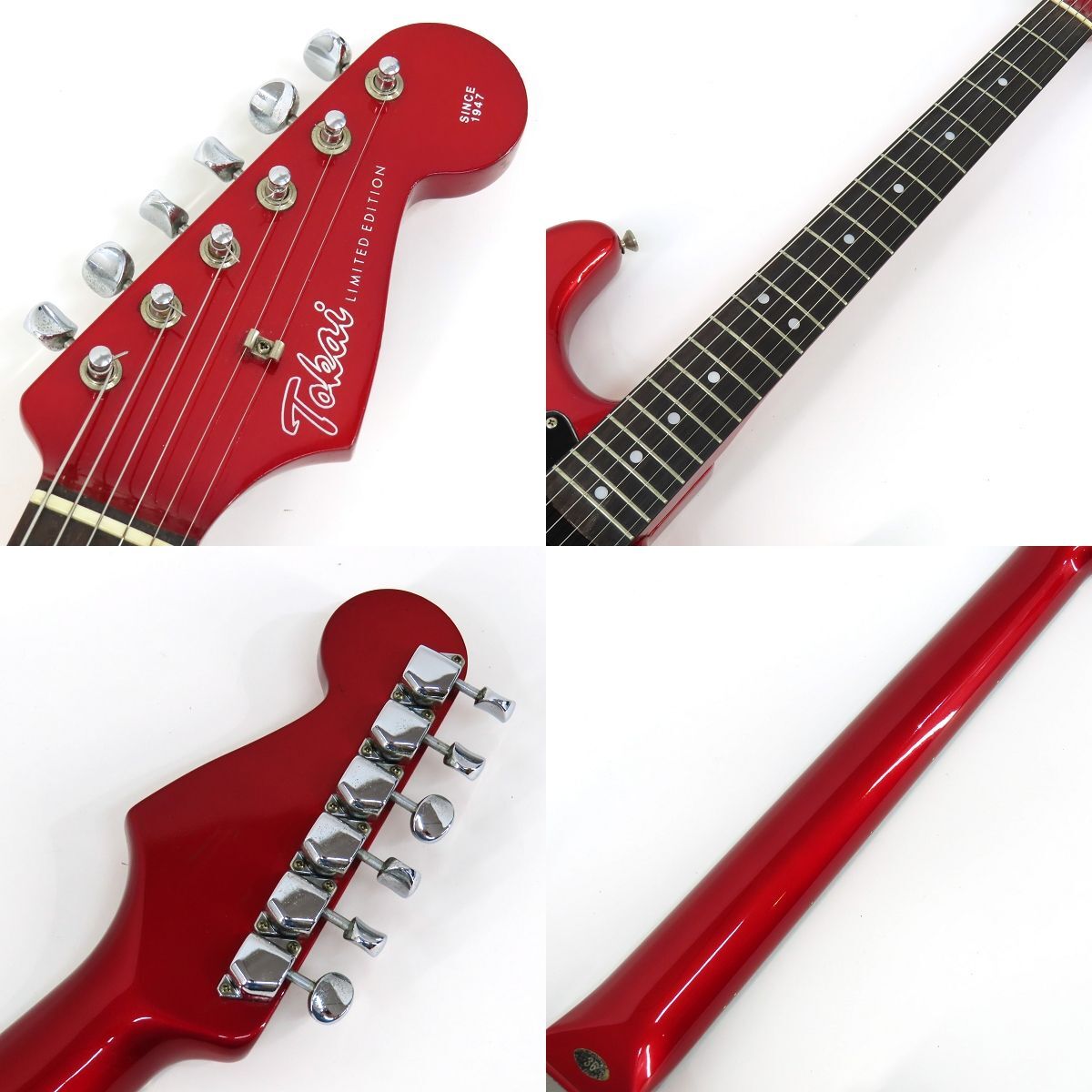 092s☆Tokai トーカイ TST-36 レッド ストラトキャスター エレキギター ※中古 □付属品:ソフトケース(社外) □型番:TST-36 □カラー:レッド □スペック ボディ:アルダー ネック:メイプル 指板:ローズウッド PU配列:H-H フレット数:21f コントロール:1Vol、1Tone、3Way SW 重量:約3.4kg シリアル:207784 □状態 ボルトオン、現在ネックはストレート、フレット残約6割、ロッド余裕有。 全体に擦りキズ、打痕が多数ございます。 ヒール部に塗装クラックがございます。 コントロールノブに着色が見られます。 ジャック位置が変更されております。 元のジャックにはビニールテープが貼られており、ジャックプレートには割れがございます。 全体に使用に伴う擦りキズ、打痕などのダメージが多数ございますが、まだまだご使用いただける1本です。 ※画像では判別しづらいUSED品特有の薄い汚れや薄いキズ、細かいキズなどある場合があります。 ※こちらの商品は、1本限りの中古販売価格となり、同時に店頭でも販売を行わせて頂いております。 売却時の商品情報の変更は迅速を心掛けておりますが、ご注文後にすでに売却済みとなる場合、誠に恐れ入りますがご容赦ください。 ※商品の試奏・販売は岡山店のみの取り扱いとなり、岡山店以外の店舗では対応いたしかねます。予めご了承ください。 ※商品の状態は商品掲載時点のものとなります。店頭での展示・試奏等により多少状態が変化することがございます。予めご了承ください。 ※当商品は発送前に調整を行わせていただいております為、ご注文より2〜5日程、発送にお時間を頂く場合がございます。 ご了承の程宜しくお願いいたします。 |