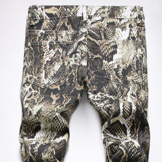 メンズ ボトムス パンツ デニムズボン スネークプリント ヘビ柄 スリム カジュアル 個性的36