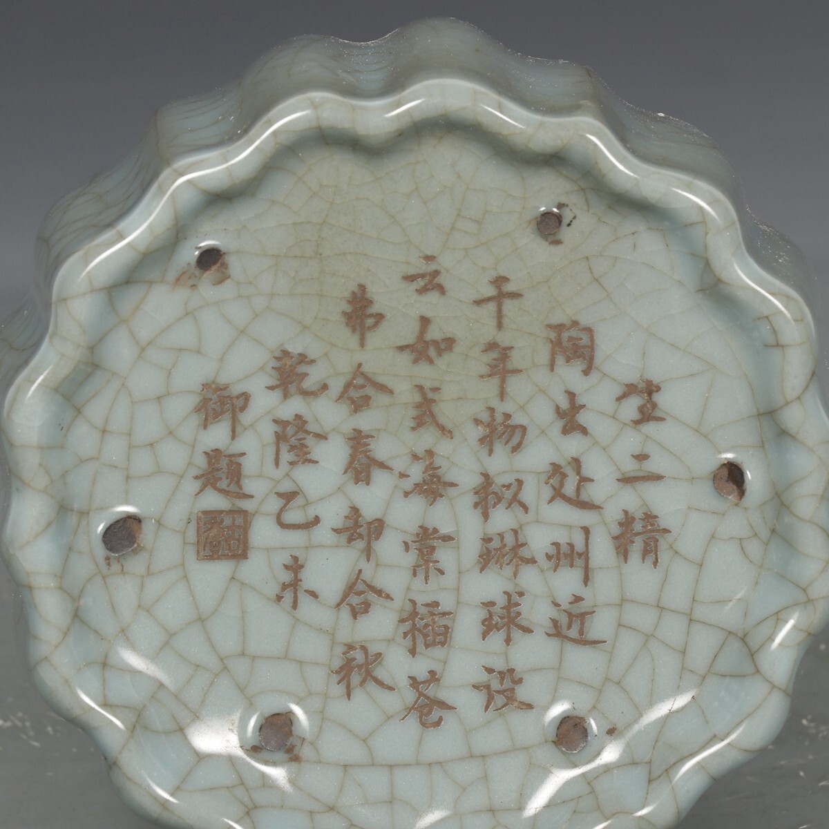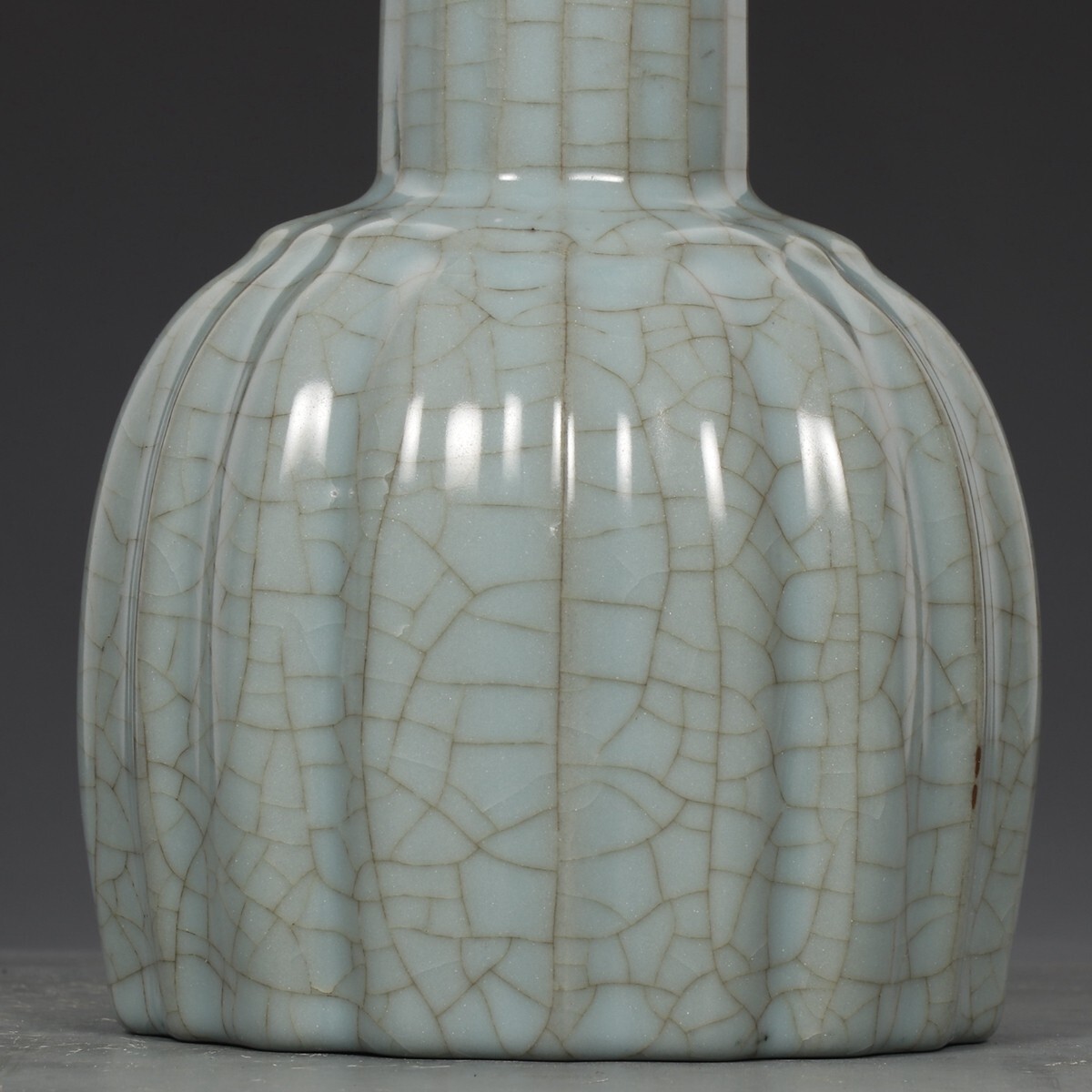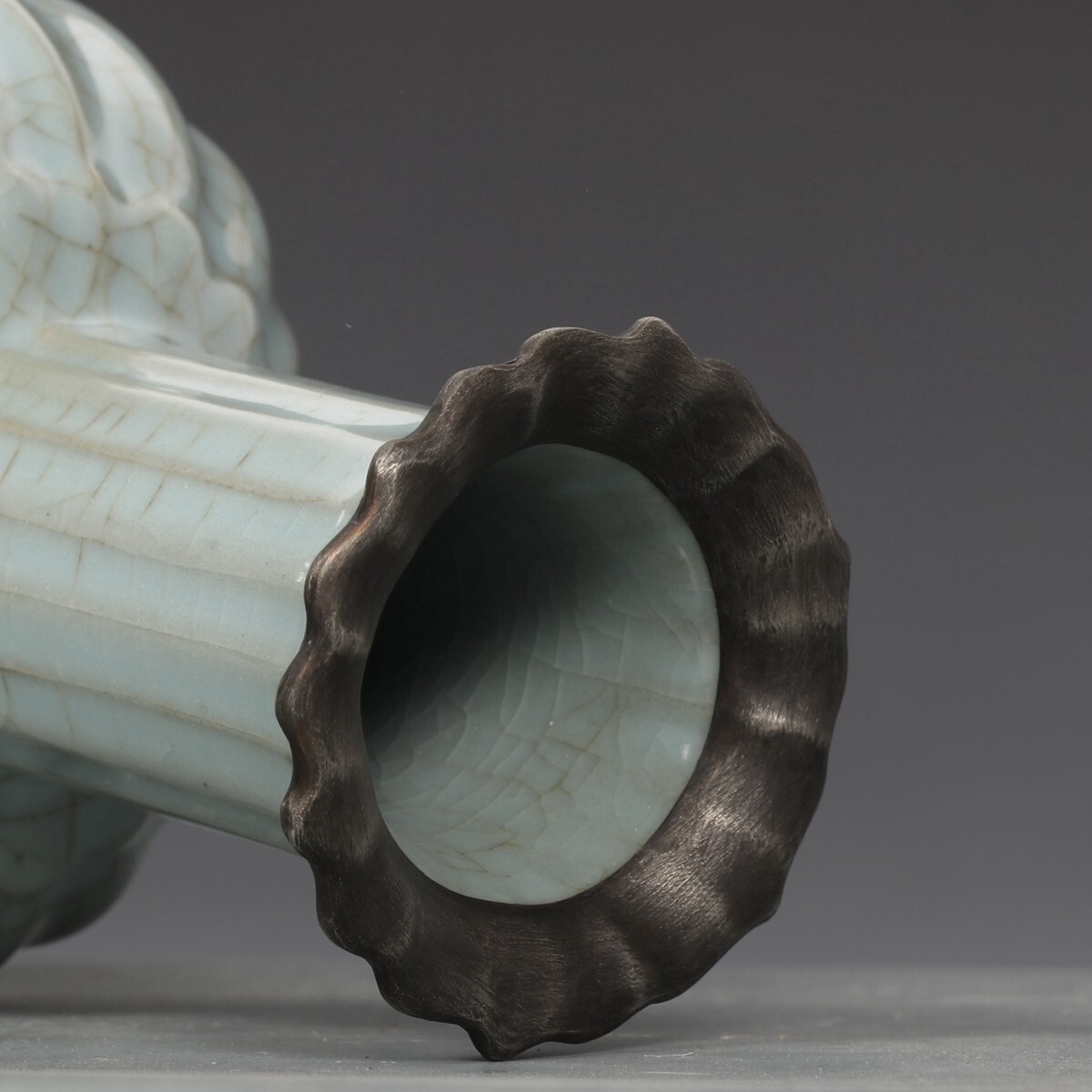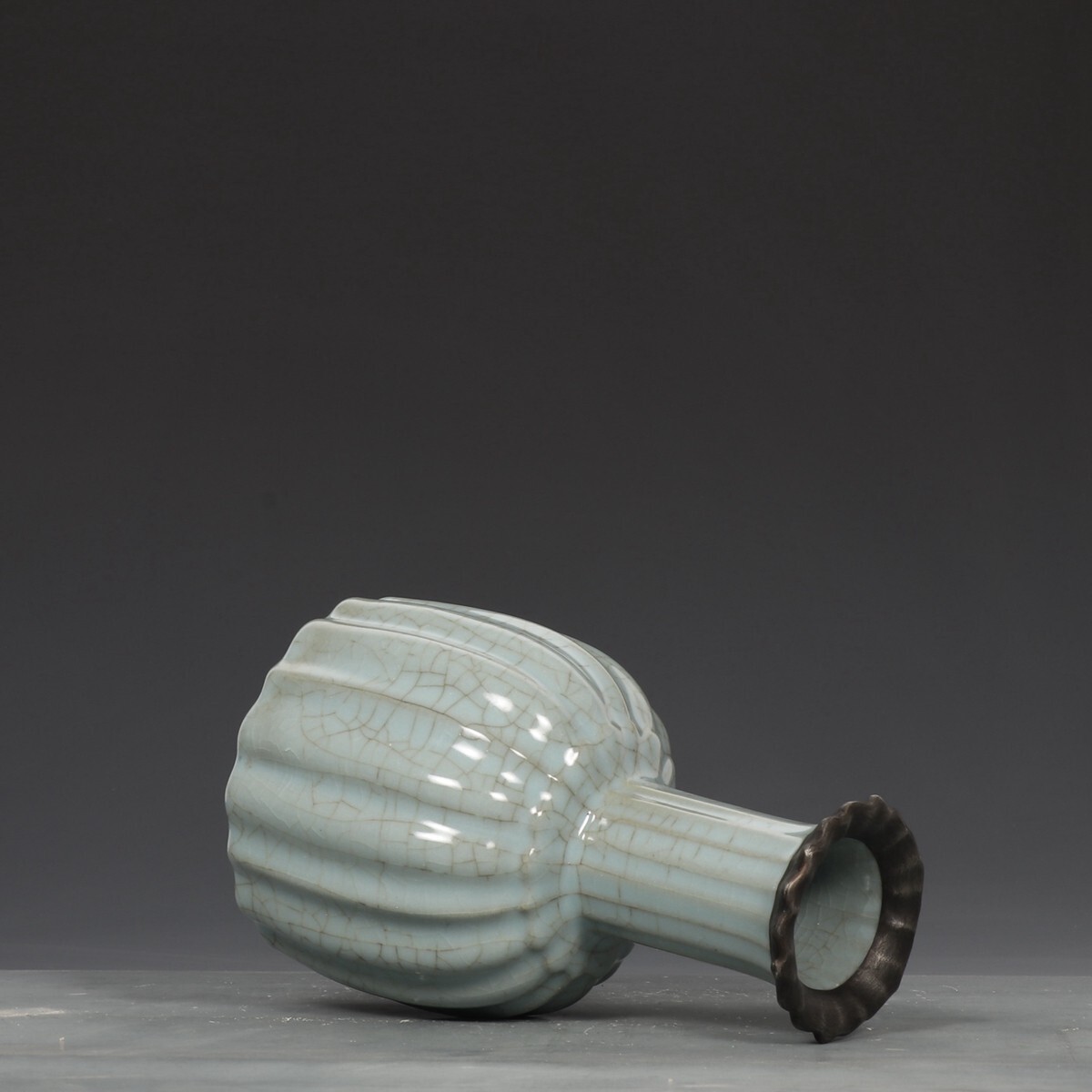 宋代 官窯 陶磁器 粉青釉 銀口御題 瓜稜尊【仁】染付 置物擺件 古賞物 古美術 中国古玩 蔵出