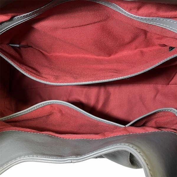【ブランド】ブルガリ 【商品名】チャンドラ 【カラー】グレー 【素材】レザー 【仕様】外側:ポケットなし 内側:オープンポケット×2、ファスナー付ポケット×1 【サイズ】H約20cm×W約37cm×D約25cm 持ち手:約45cm 【付属品】保存袋 【ランク】B (使用感あり) 【状態】 持ち手:擦れ、シワ、型崩れ、中程度有り 外側の状態:擦れ、シワ、型崩れ、小程度有り 内側の状態:良好 金具の状態:傷、極小程度有り 付属品の状態:シワ、染み、使用感、小程度有り | |