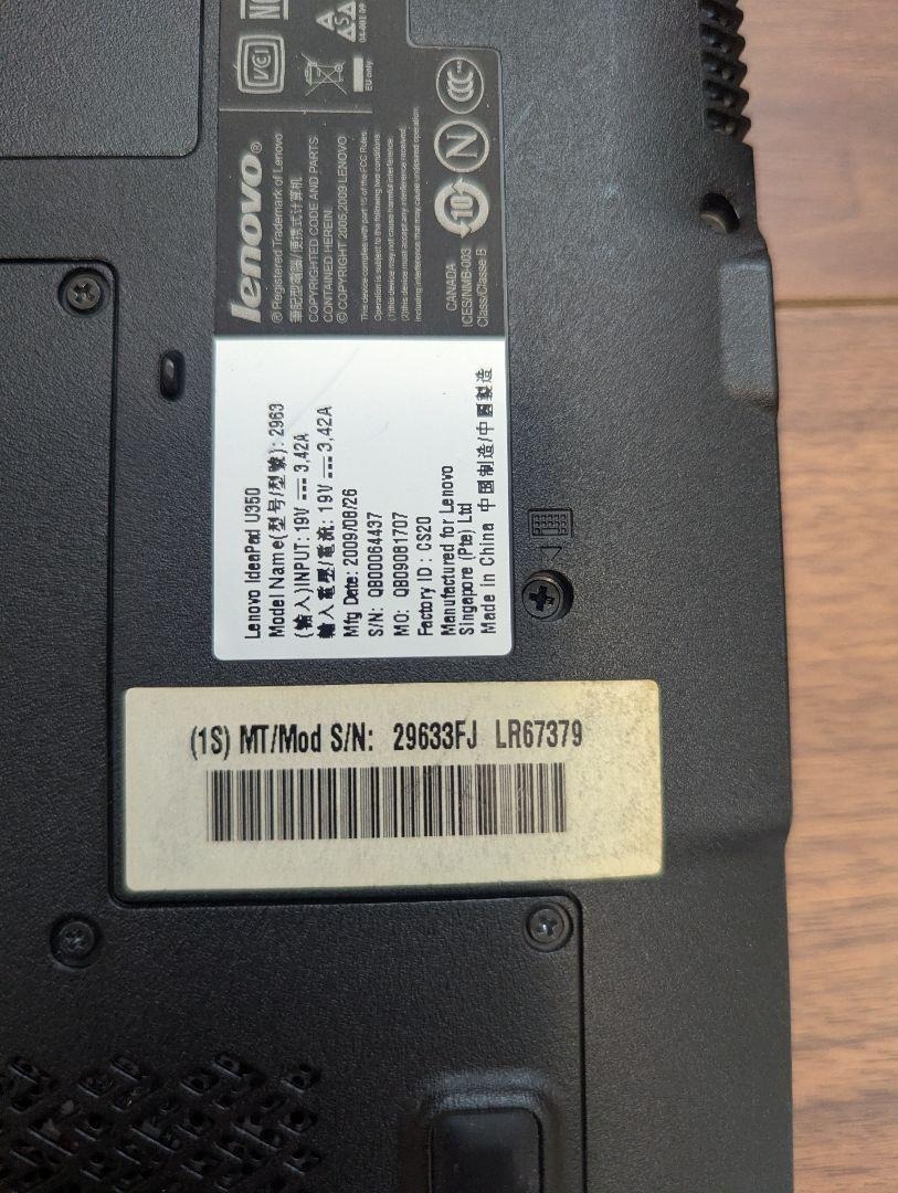 Lenovo IdeaPad u350 Windows7 本体、ACアダプター