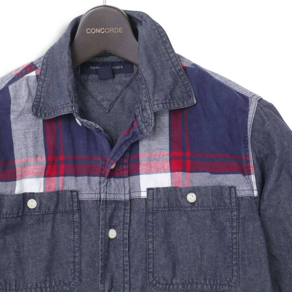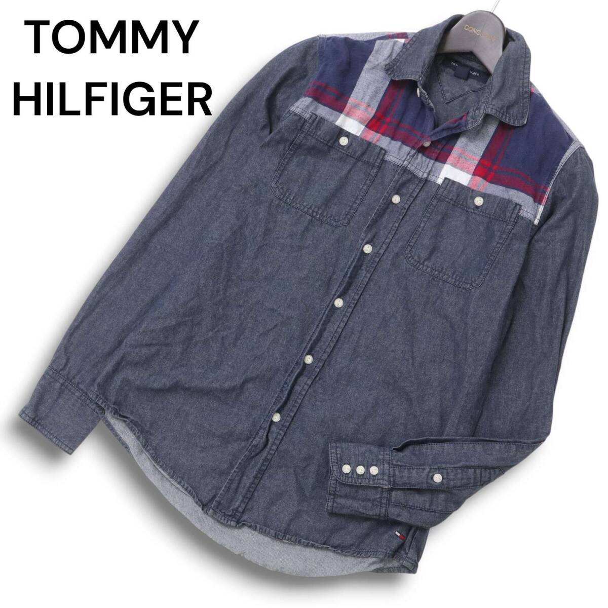 TOMMY HILFIGER トミーヒルフィガー 通年★ 長袖 チェック 切替 ワーク デニム シャツ Sz.XS メンズ