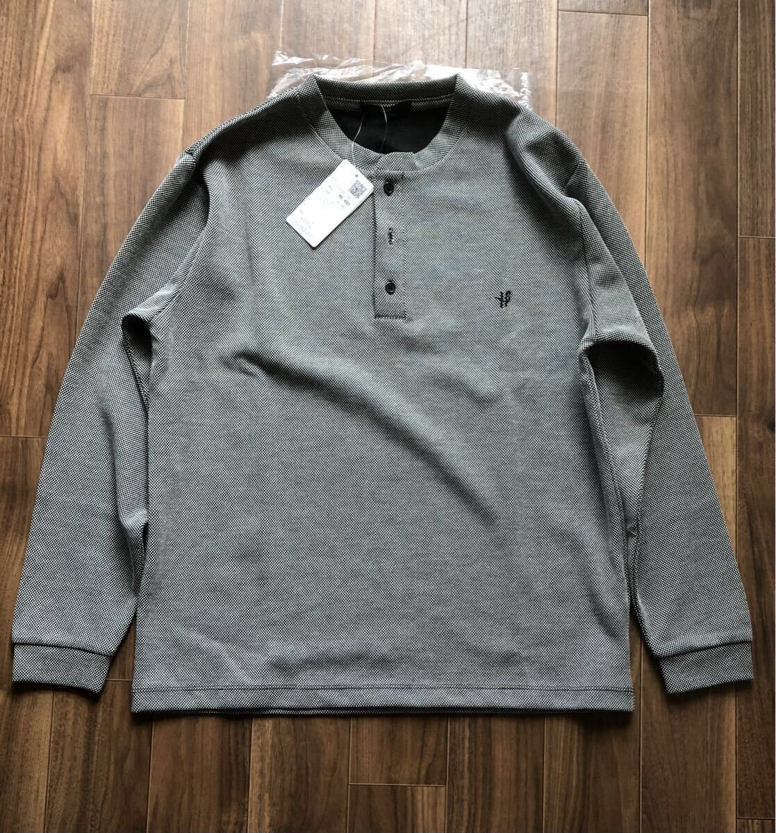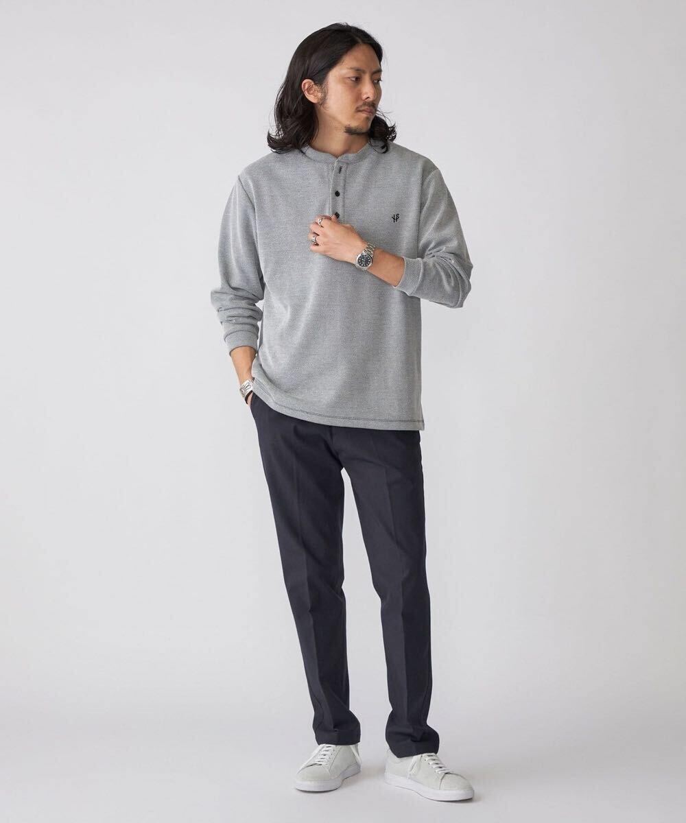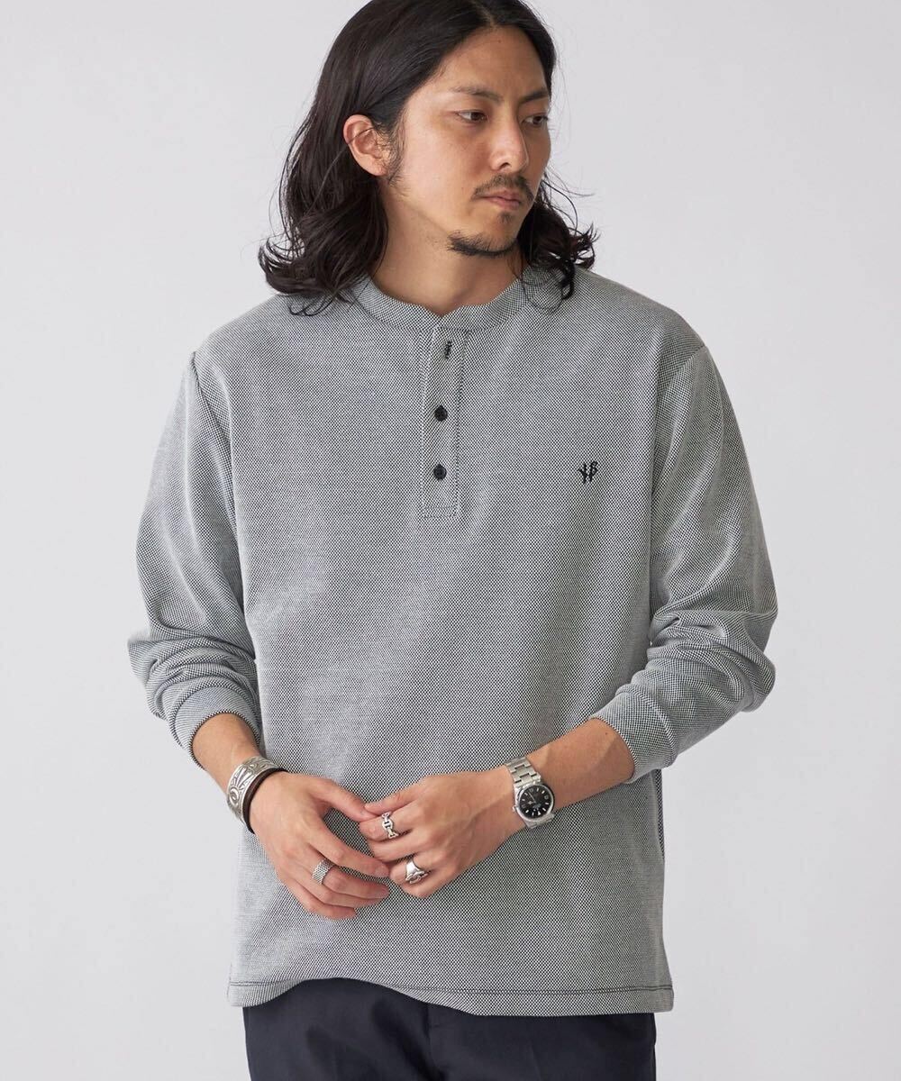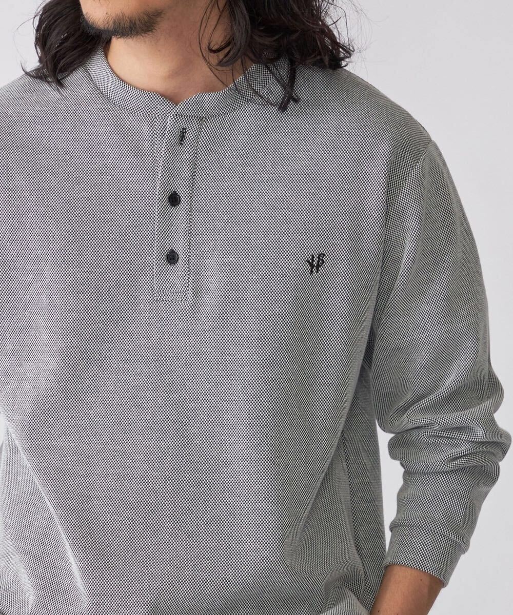 大人な雰囲気漂うヘンリーネックデザインバージョンがアップデートして登場!バーズアイの織柄がポイントのロングスリーブTシャツ