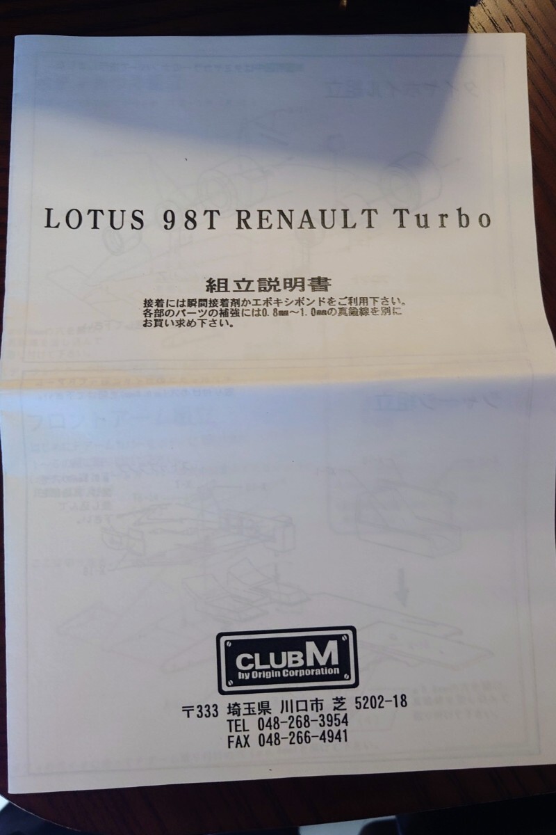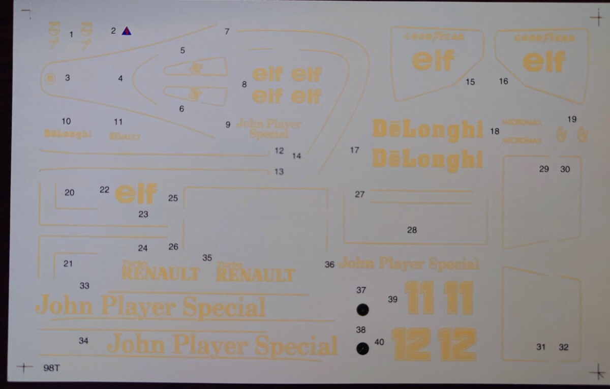 商品名 : 1/20 Scale Resin Kits J.P.S.LOTUS 98T RENAULT Turbo J.P.S.ロータス98Tルノーターボ