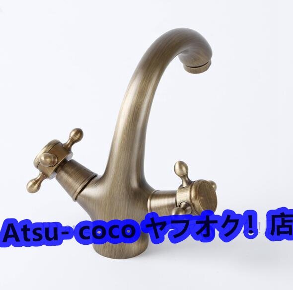 新品 ヨーロッパのダブルハンドルコントロール浴室の蛇口アンティーク蛇口ソリッドブラスブロンズキッチン蛇口シンク用