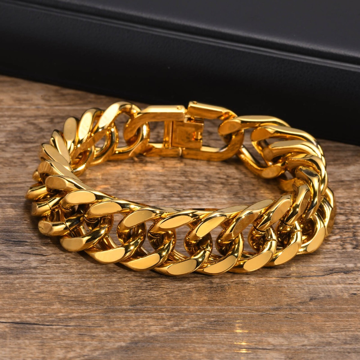 ◆◆1円〜大特価 18kgp(Gold Plated金鍍金)  ゴールドチェーンブレスレット 21.5cm  ヴィンテージ  光沢 高品質 Christian バングル