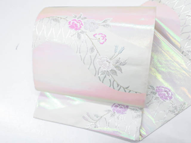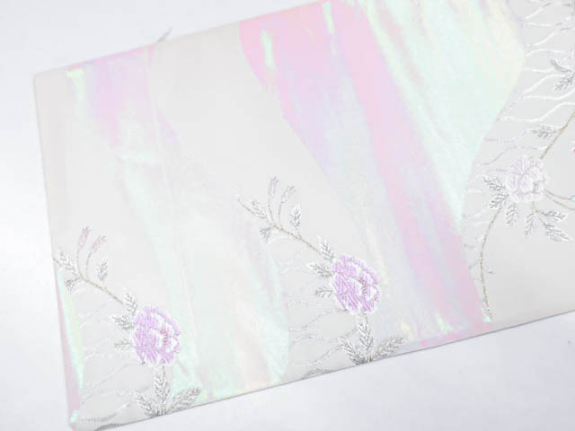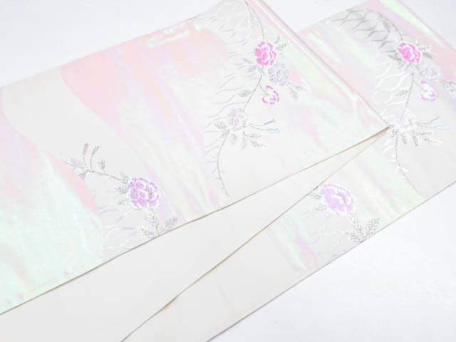 リサイクル商品の為、無地場薄汚れがございます。 前柄耳汚れがございますがご着用いただけると存じます。 地色は ピンク・生成です。 1枚目の画像が近いお色かと思われます。 素材は正絹です。 |