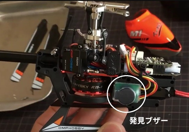 3.機体墜落時にプロポ電源を切って35秒位経過すると大音量ブザーが鳴り始めます。大音量ですのですぐに発見できると思います。ブザーを止めたい場合は機体からバッテリーを抜いてください。