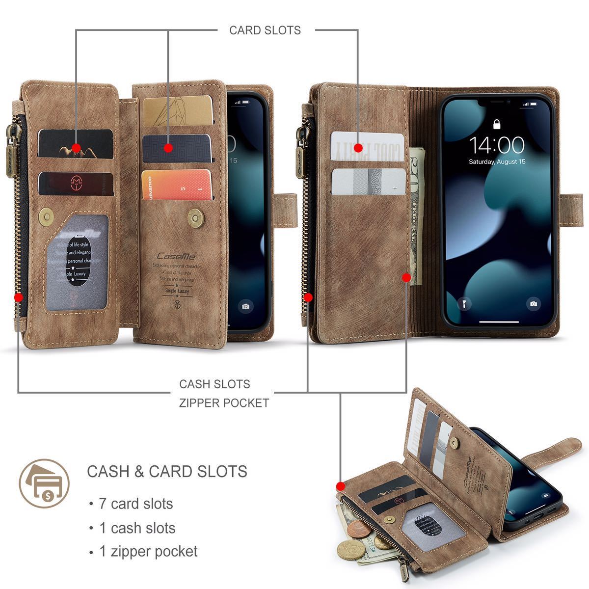 | 対応機種:iPhone 13 高品質のレトロ調PUレザーで丁寧に作られた、おしゃれな 多機能 iPhone アイフォン ケース・カバーです。カジュアルに過ぎず、フォーマルに過ぎず、どんなシーンにもふさわしい iPhone手帳型ケース。 使い勝手抜群、7枚カードまで収納できるカードポケットが付く。日常によく使うカードをたっぷり収納できます。iPhoneケースと財布が一体になる、望ましいアイフォン手帳型ケース。 プレミアムファスナー付きの小物入れポケットは、コインケース / キーケース / 小銭いれとして活用できます。あとフリースペースに折りたたみ紙幣を入れますので、スリム 財布型 iPhoneケース を探している方にオススメ。 動画視聴に便利なスタンド機能。横に置く際に、マグネット式のスナップは背面にくっつけるので、邪魔になることがありません。 端末をしっかりサポート。iPhone本体を嵌める背面ケースは柔らかいシリコン製となり、落下時の衝撃からiPhoneを守ります。※背面ケースはカバーから取り出すことができません。 | |||