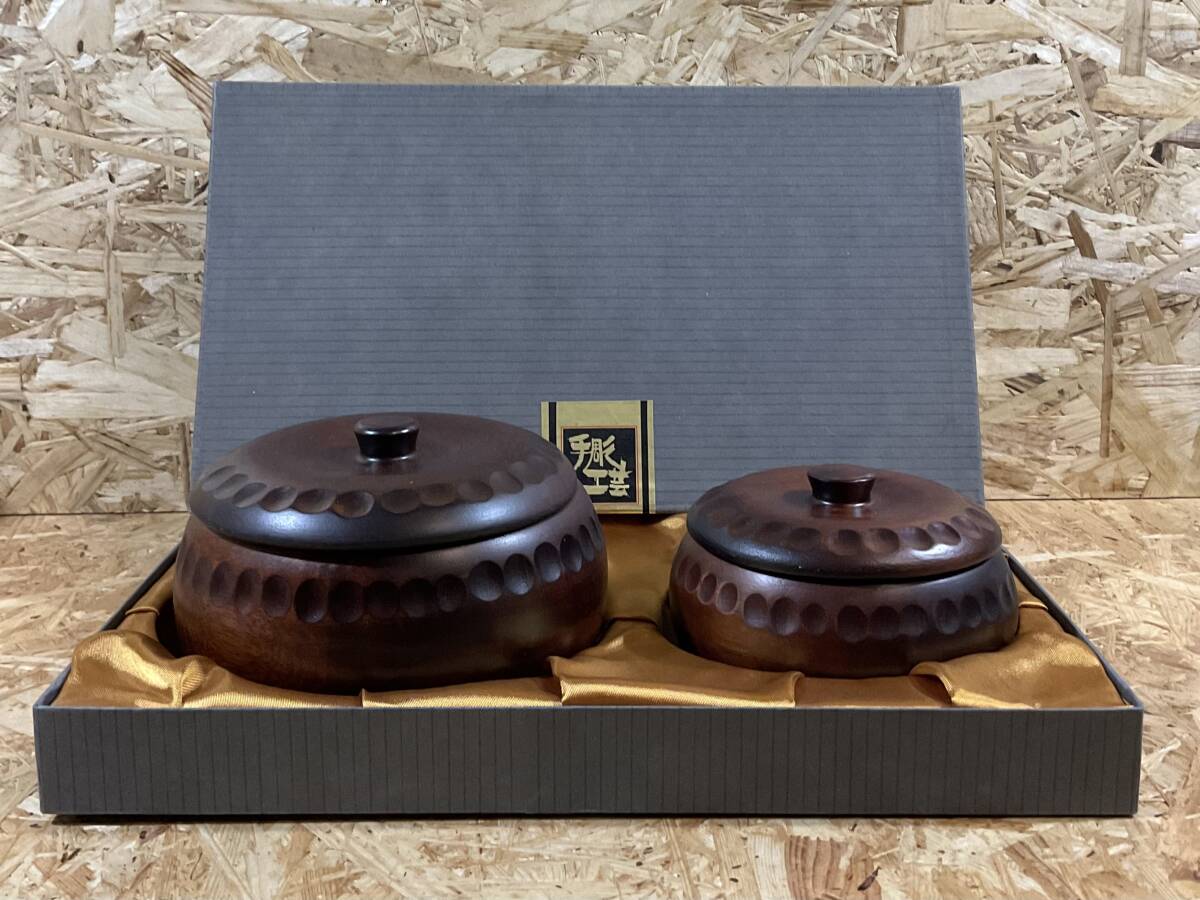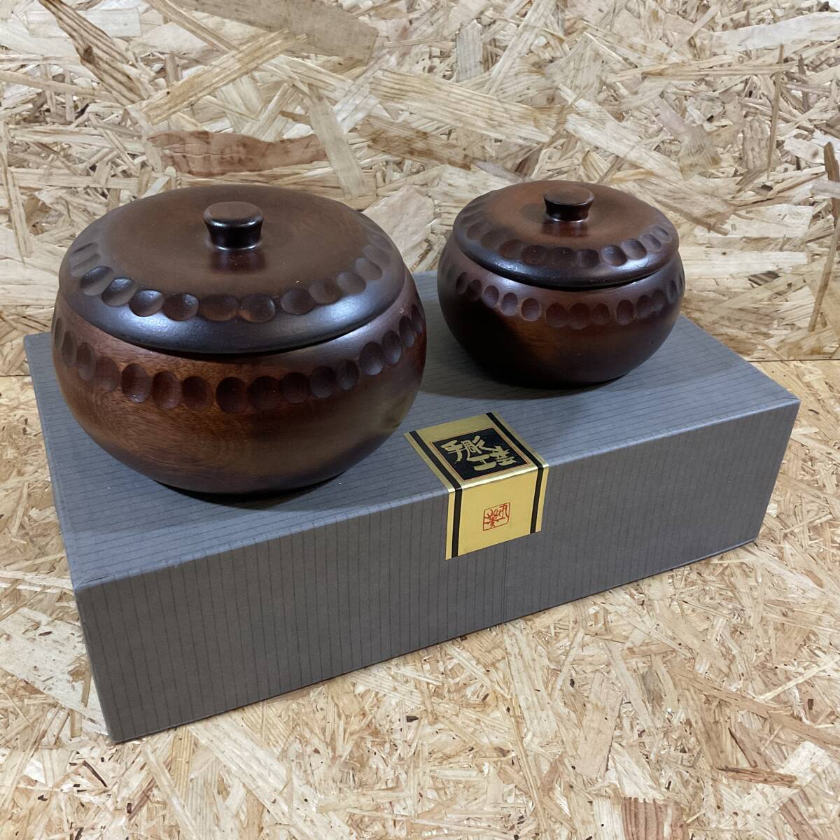 工芸の風合いが美しい木製小鉢大小2点セットです