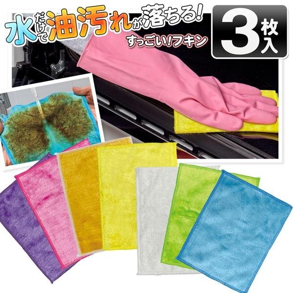 布巾 3枚セット 水だけ 油汚れ 洗剤不要 クロス 換気扇 タオル 台拭き ぞうきん キッチン 掃除 送料無料 2M◇ すっごいふきん