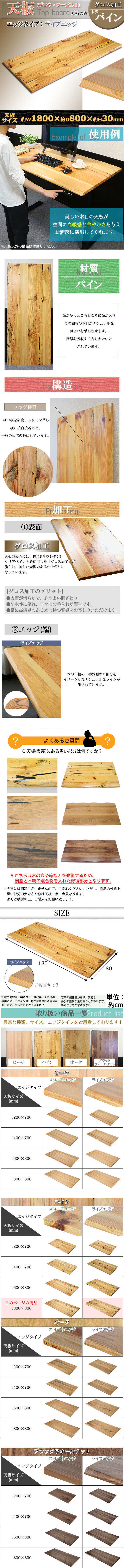 | 商品名 | 送料無料 天板 デスク テーブル 天板のみ パイン材 W1800×D800×H30mm パイン ライブエッジ グロス加工 高級 木製 木材 天然木 無垢材 耳付き 松 tenban180pineg |