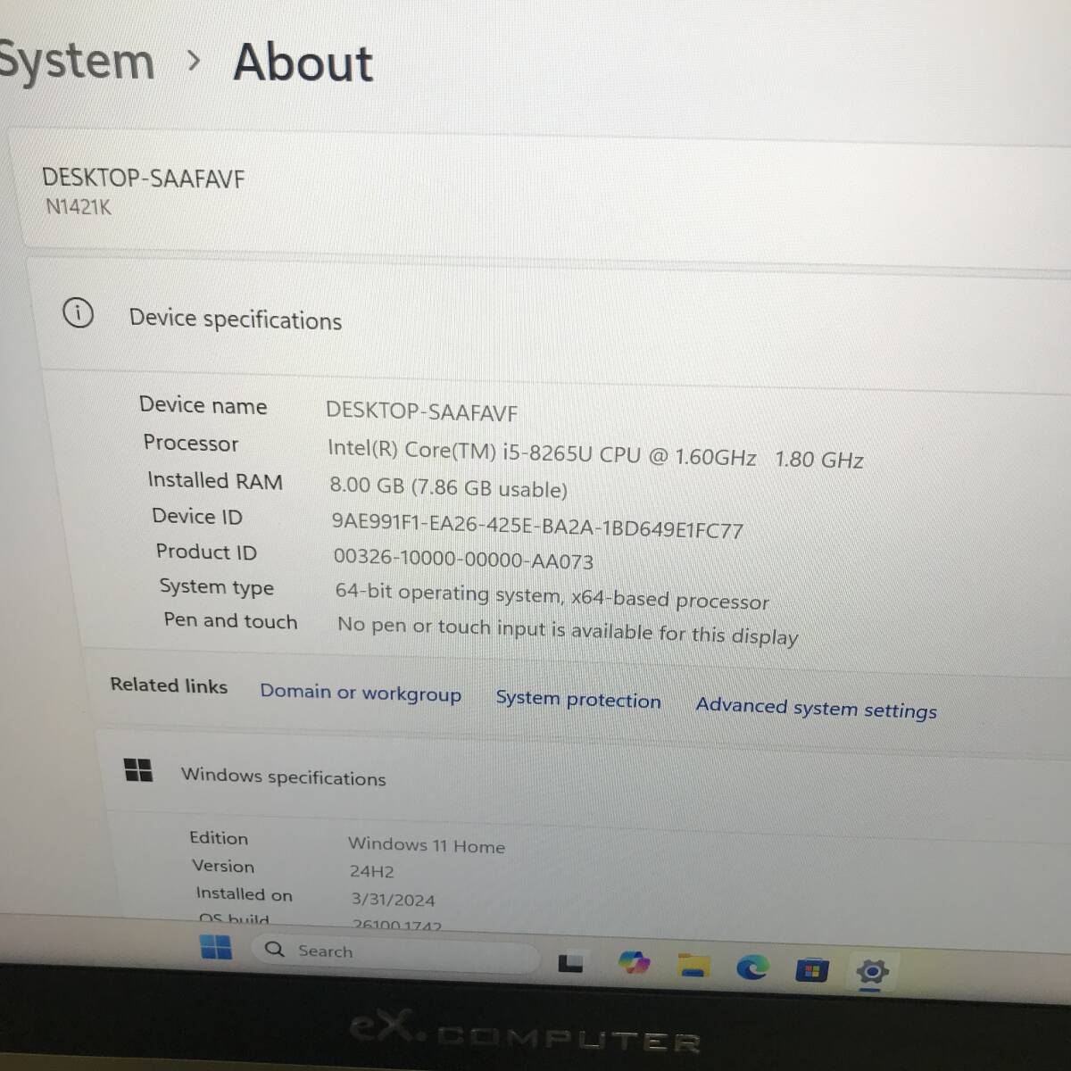 | EX - Computer N1421K/S Intel Core i5 8265U 1.8GHz/8192MB /Storage-256NVMe/14" Wide Display/W-Cam/W-Lan |