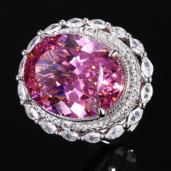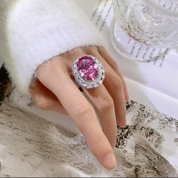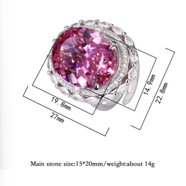 ヴィンテージ 15*20mm ピンククォーツ リング、パーティーファインジュエリー、女性のためのアクセサリー、誕生日ギフト