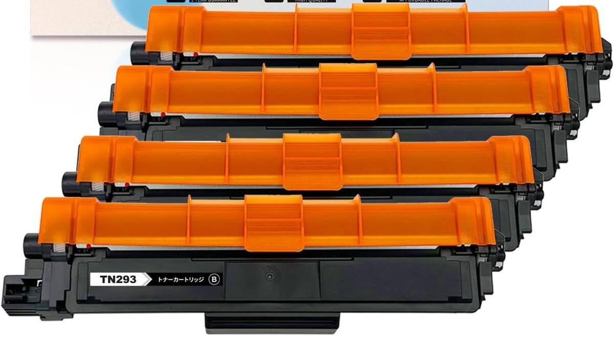 パッケージ内容: TN-293 互換トナーカートリッジには次のものがあります。 ブラック 1本, シアン 1本, マゼンタ 1本, イエロー 1本, [印刷枚数] ブラック(約3,200/本) カラー(約2,300/本) *A4用紙に5%密度で印字した場合の参考値