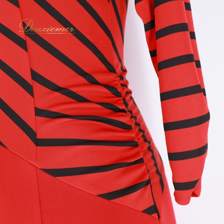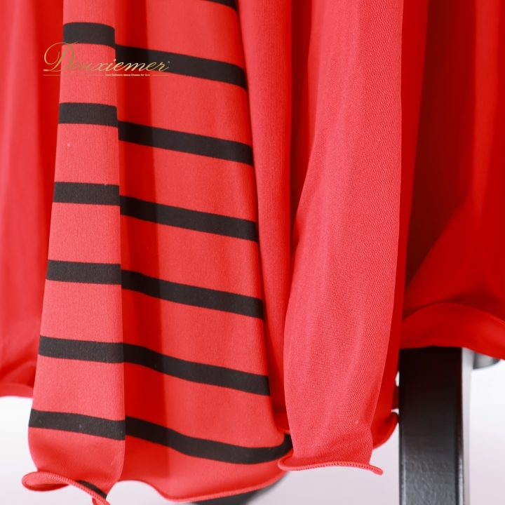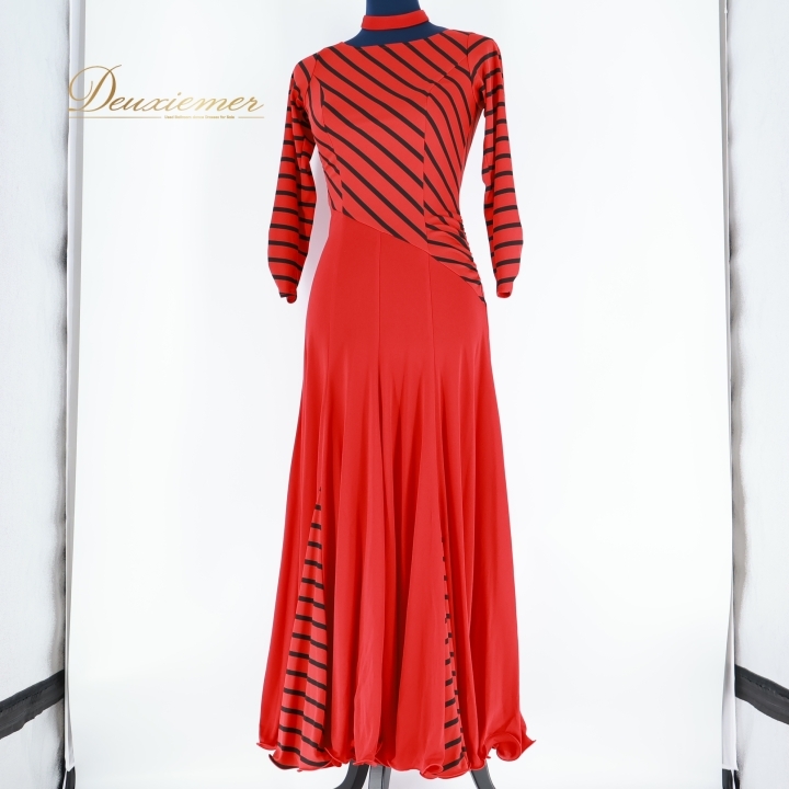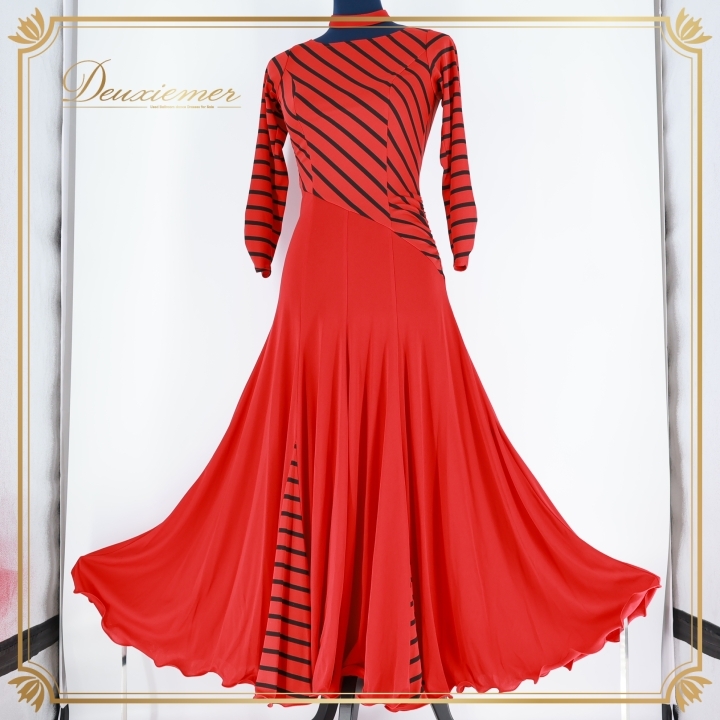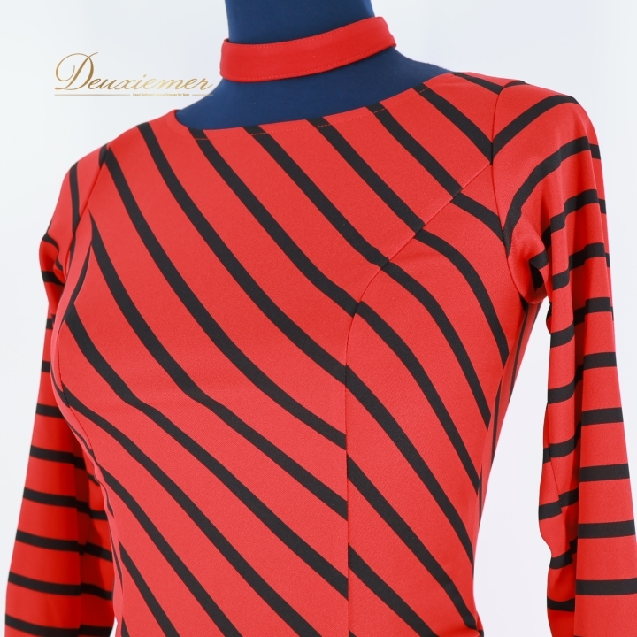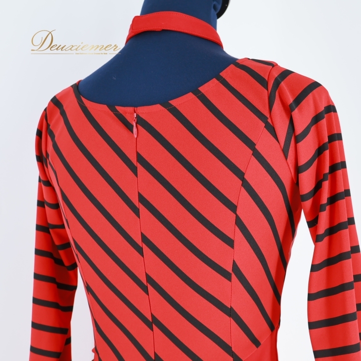 | 【商品名】社交ダンス 衣装 ワンピース ドレス 【サイズ】9R表記 平置き実測:総丈約125cm(裾~肩部まで)、身幅約39cm、ウエスト約31cm~ ※実測の為、多少の誤差はご了承ください 【仕様】 ・背面ファスナー仕様 ・レオタード無し ・伸縮性有り ・肩パッド無し ・胸パッド無し ------------------------------------ 【ポイント】 ▽Sanline サンリーヌ ▽ストライプのスタイリッシュなデザイン ▽伸縮素材で動きやすい ▽パーティや発表会など ------------------------------------ 【撮影時使用トルソー】 種 類:女性用トルソー9号 (一般的に使用されるサイズです) サイズ:肩幅約37cm、バスト約88cm、ウエスト約66cm、ヒップ約89cm |