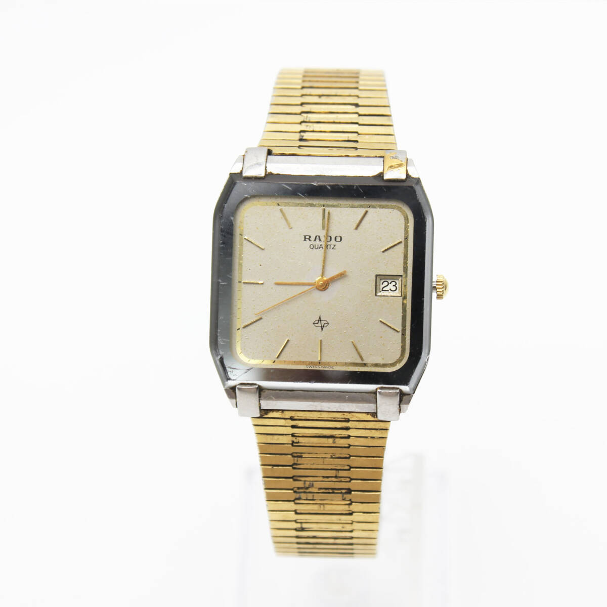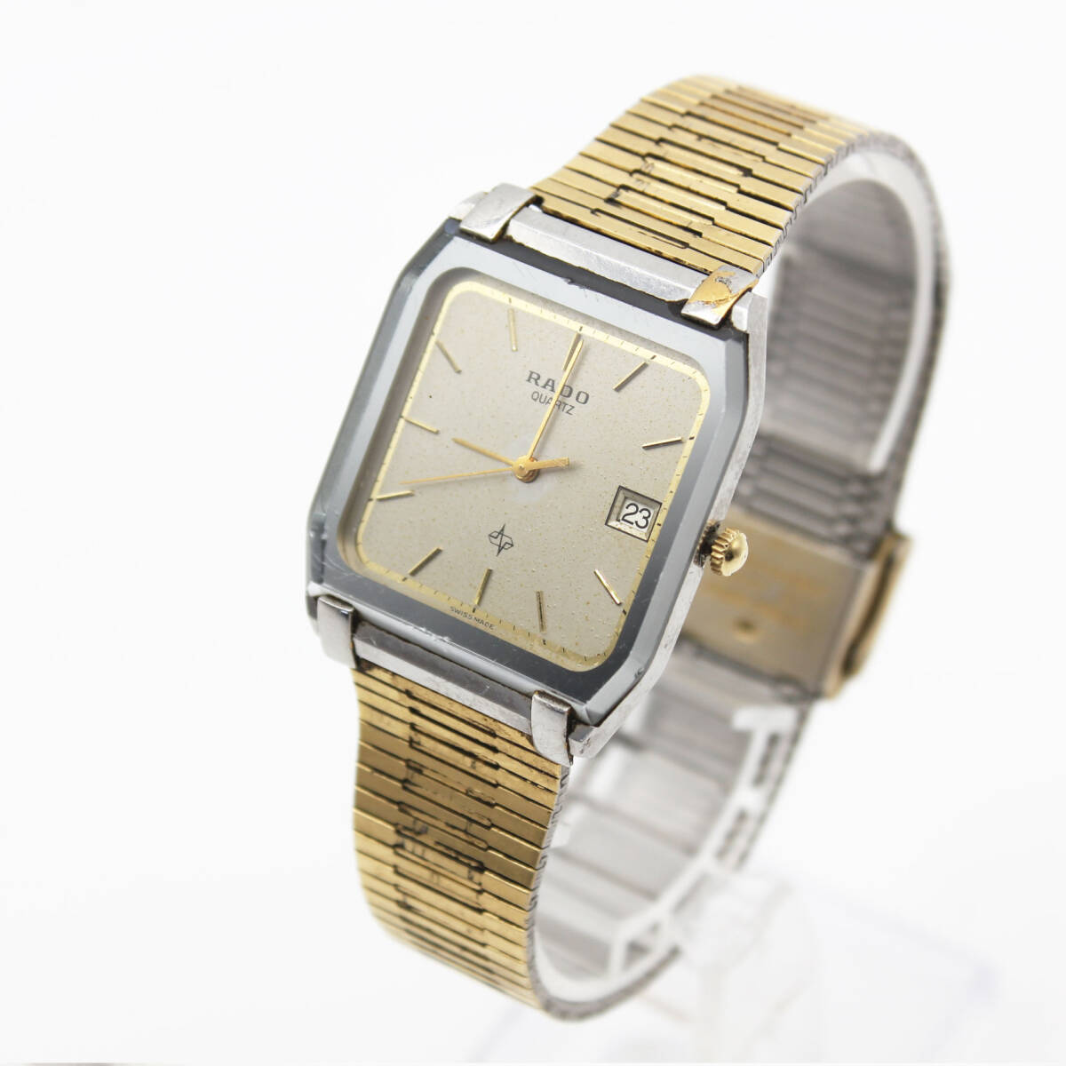 W250816-38 RADO ラドー 113.3229.4 メンズ腕時計 クォーツ デイト ジャンク スクエア 文字盤ゴールド