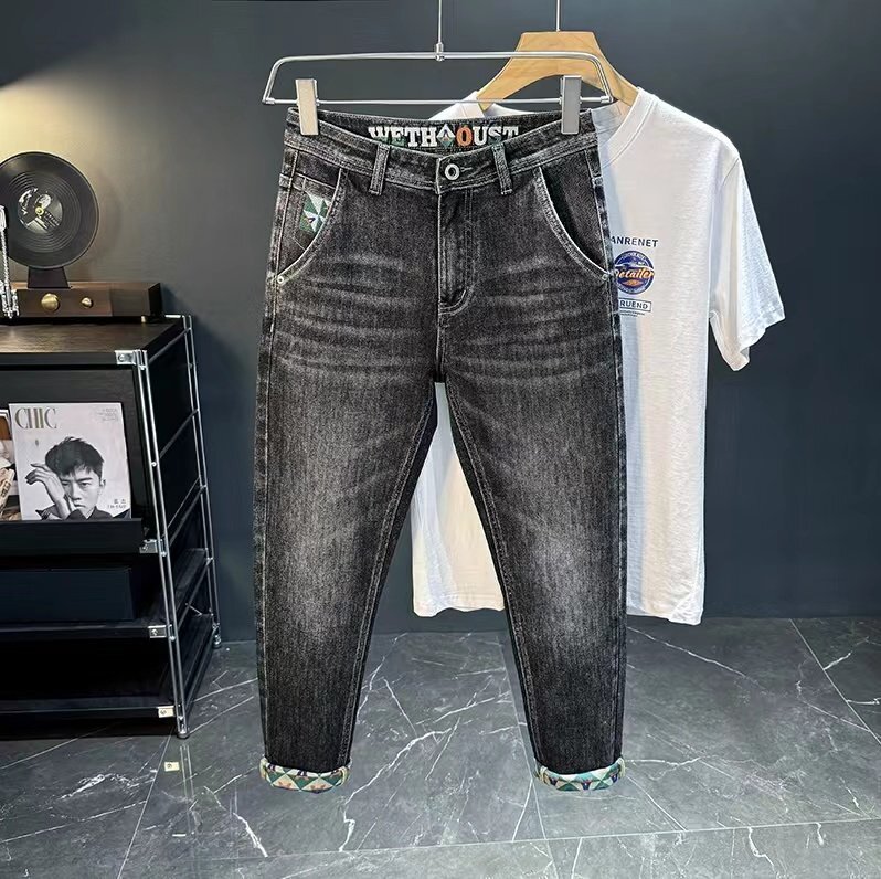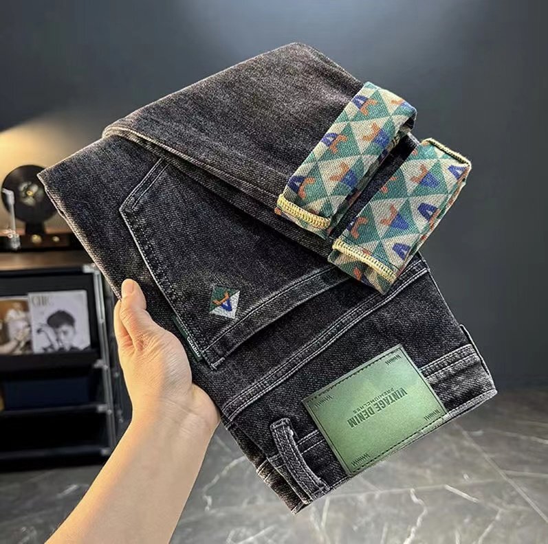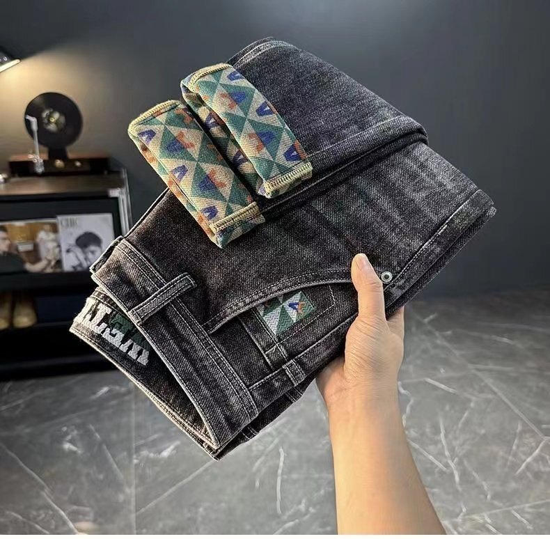 秋冬 最上級 刺繍 メンズホットスタイルジーンズ メンズストレッチスリムストレート刺繍プリントライト高級カジュアルパンツ w29